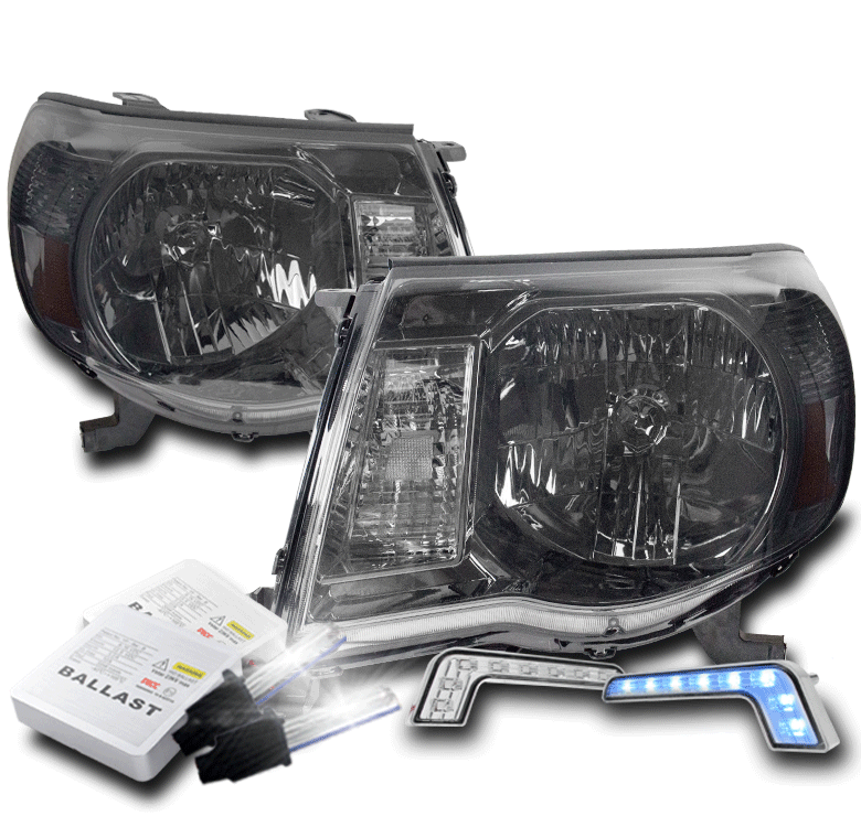 A pair of headlights (driver and passenger side), a pair of DRL lights, and a set of HID conversion kit 35W 6000K