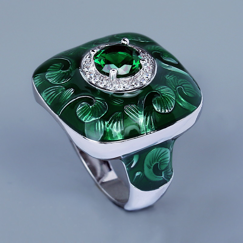 π Unique Domineering Men's Ring - Green Handmade Enamel & Emerald Zircon Jewelry