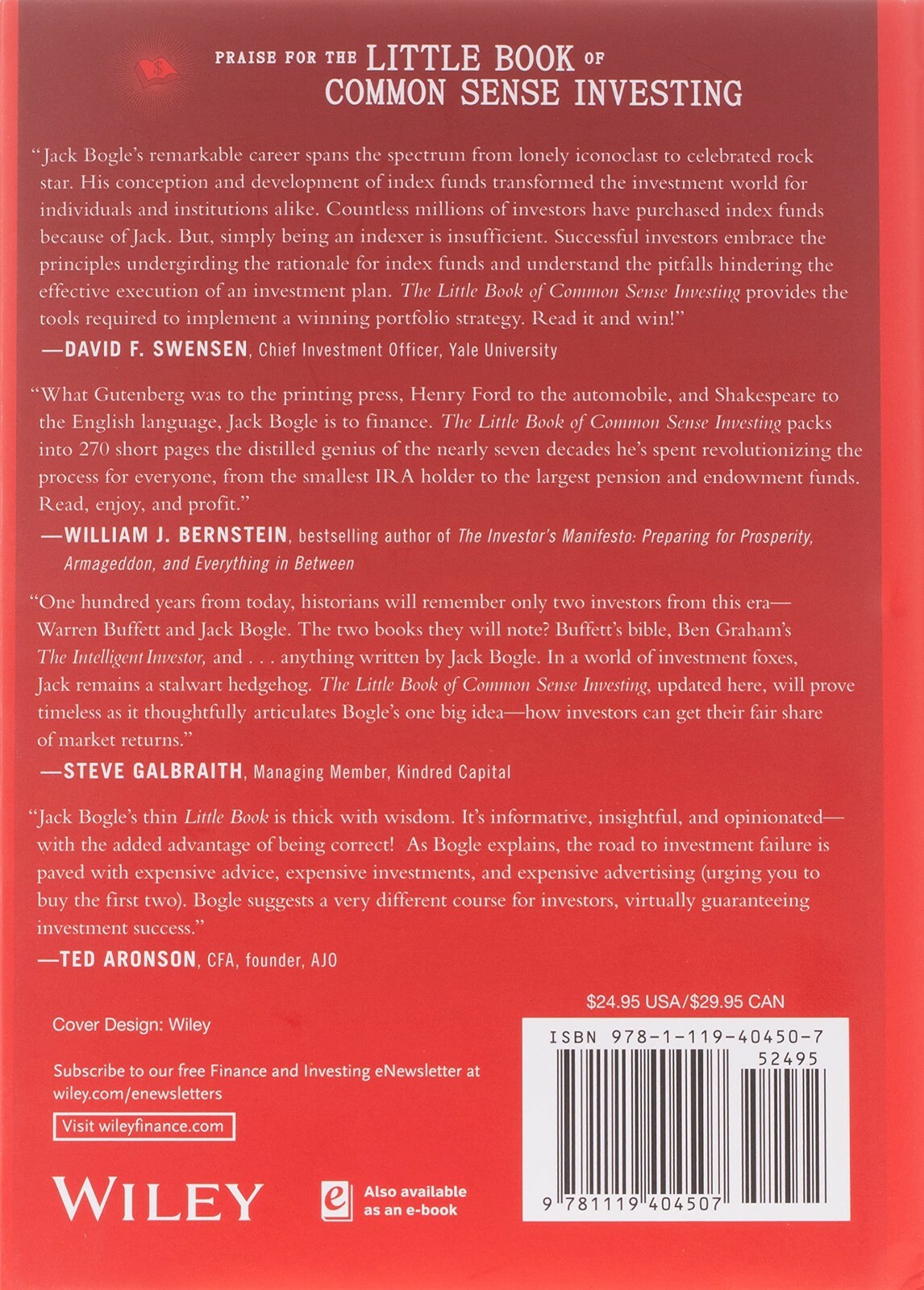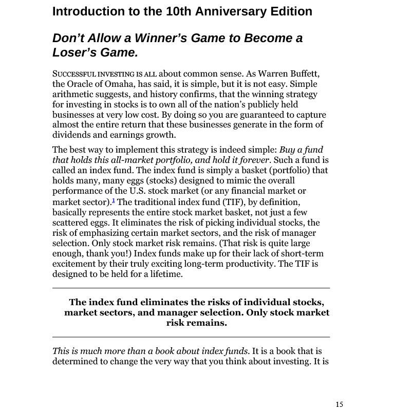 Bogle shows you how to make index investing work for you and help you achieve your financial goals, and finds support from some of the world's best financial minds: not only Warren Buffett, but Benjamin Graham, Paul Samuelson, Burton Malkiel, Yale’s David Swensen, Cliff Asness of AQR, and many others.