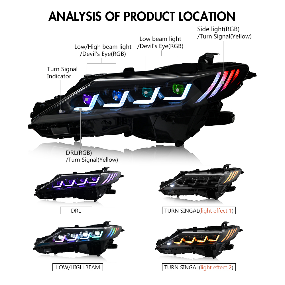 RGB LED Headlights For Toyota Camry 2018-2024 DRL Sequential Front Lamps Pair