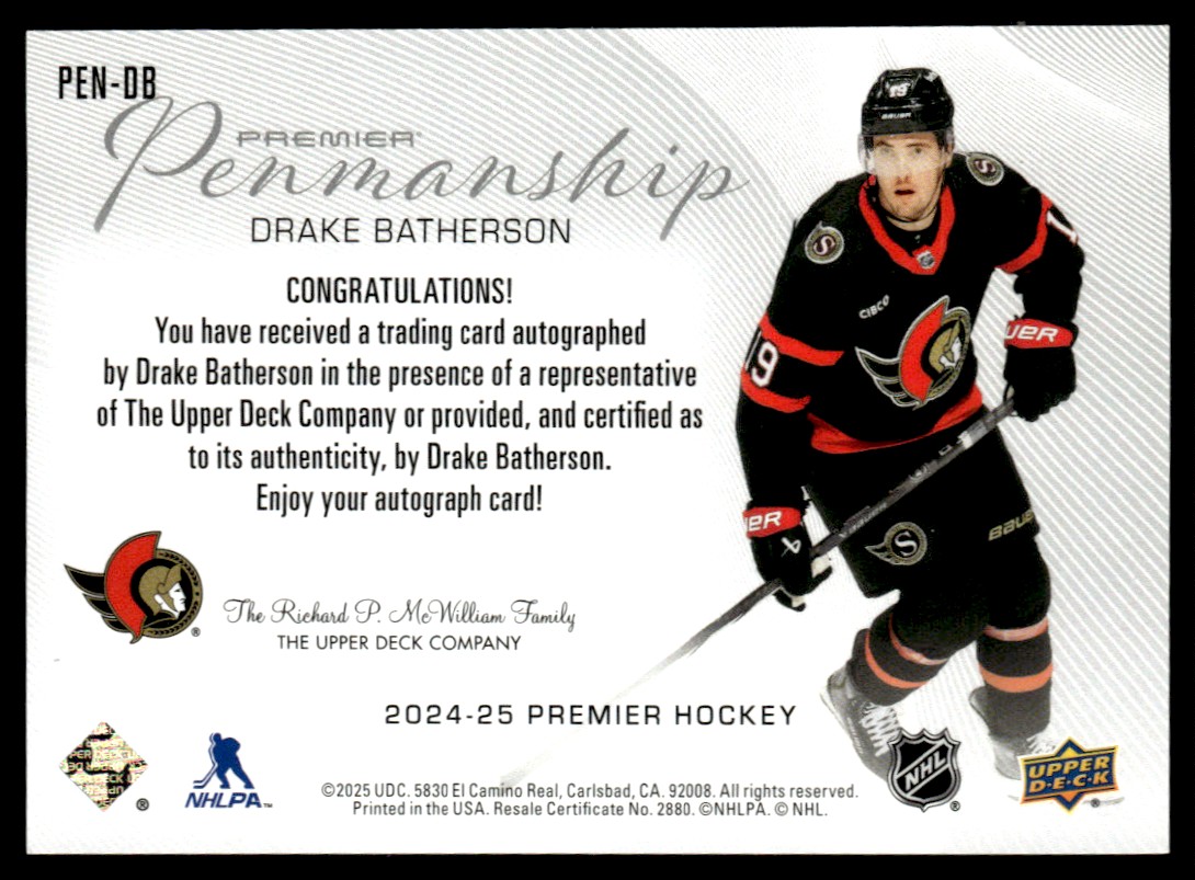 2024-25 Upper Deck Premier Penmanship Auto Drake Batherson #PEN-DB