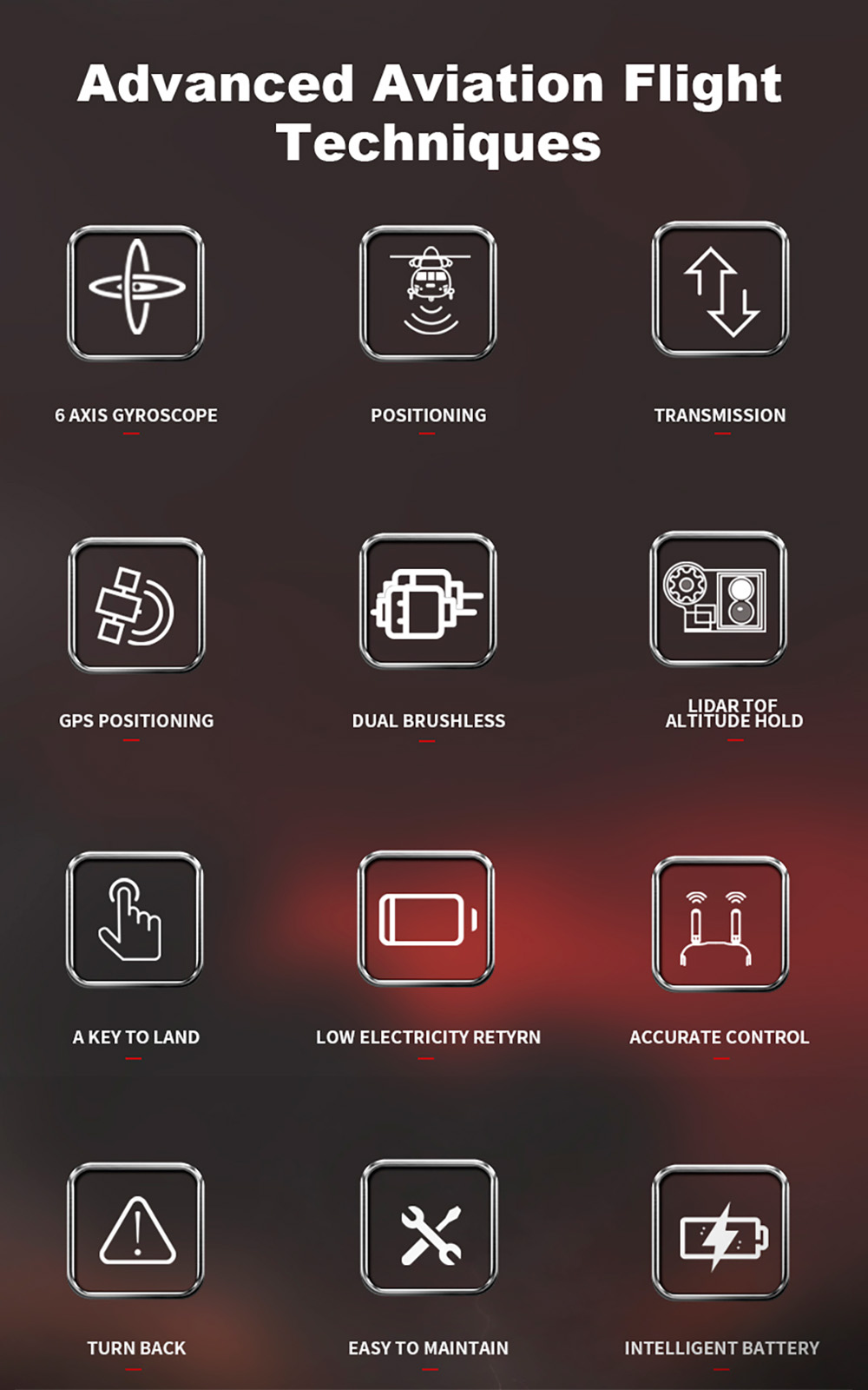 2. Adopting a dual axis co drive motor and an electronic stabilization system, it provides a more precise tactile sensation and more stable flight.