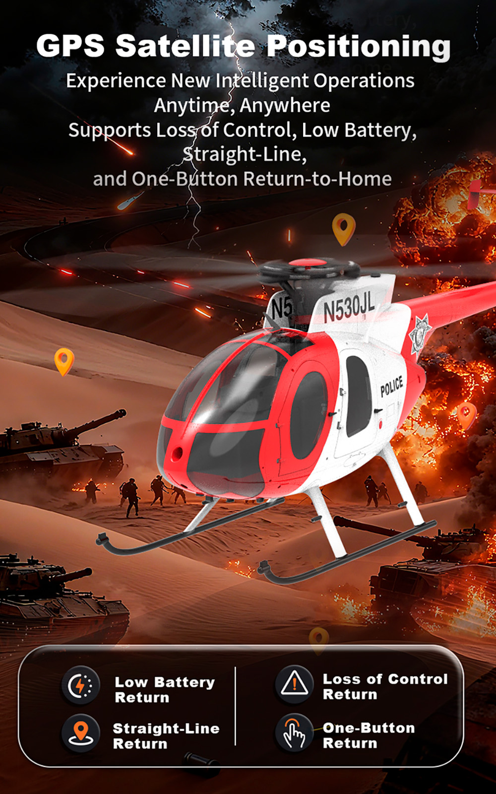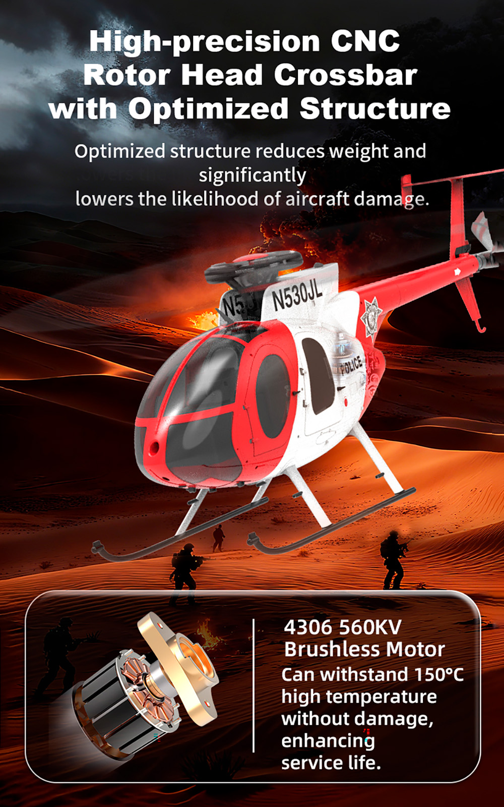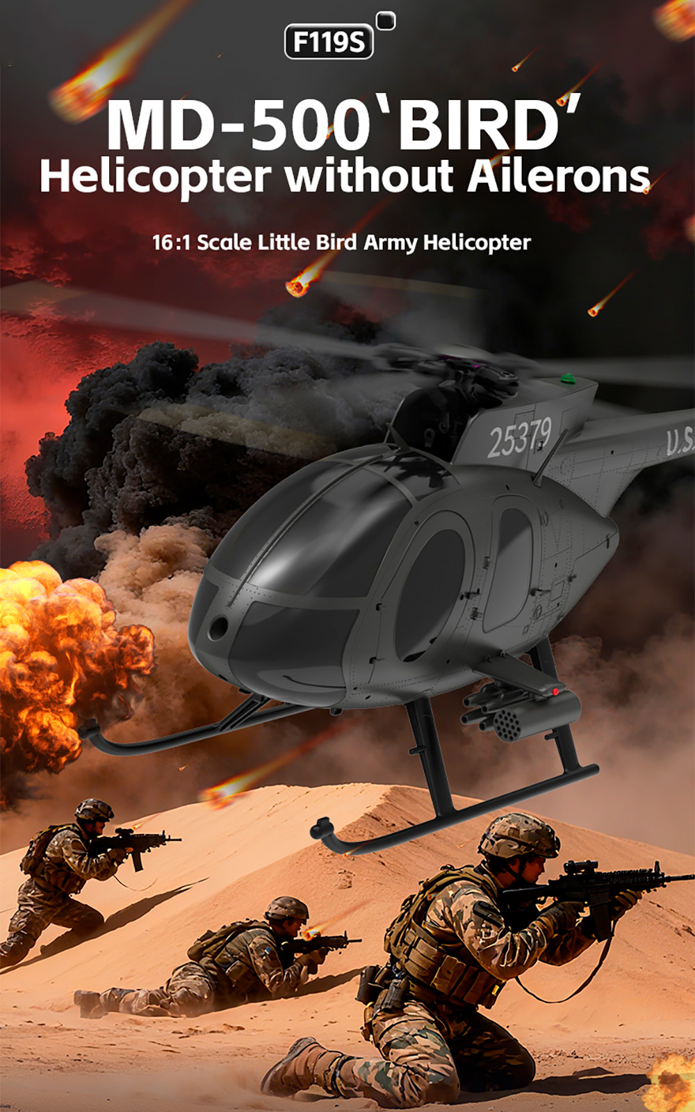 1. According to the American MD500 Little Bird helicopter, it has a 16:1 scale reduction, high simulation appearance, and cool lighting.