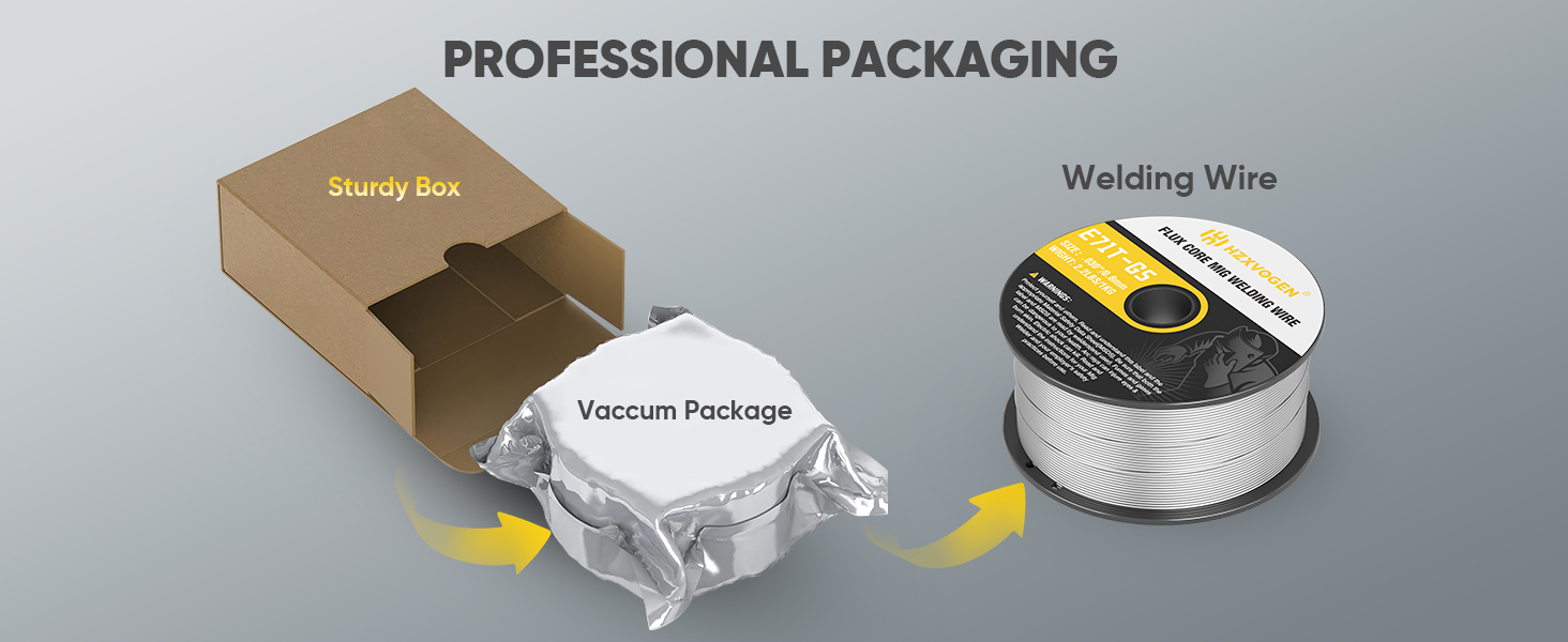 Professional Packaging: The gasless flux core welding wire is vacuum-packed to ensure it is waterproof, moisture-proof, and dustproof. This packaging helps maintain optimal welding performance and quality