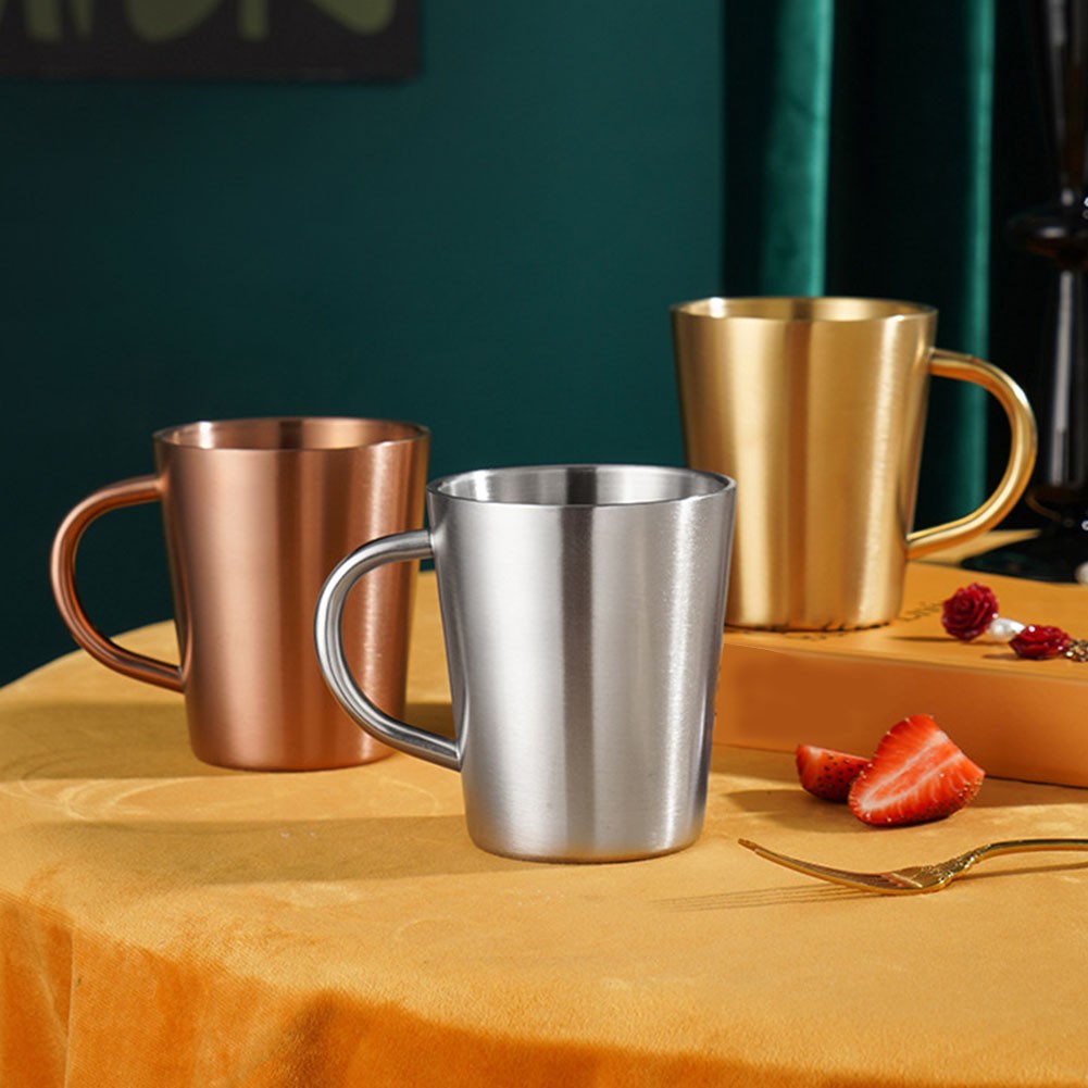 1 x tasse à café en acier inoxydable double couche tasse à eau avec poignée