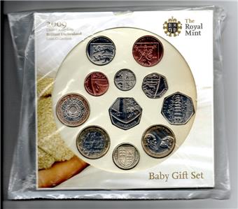 2009 British Year Set, Baby Gift Set, 11 Coins in Brilliant Uncirculated Condition, includes the Scarce Kew Gardens 50 Pence.