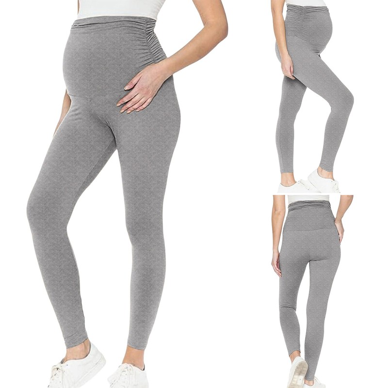 The high-waist and ruched design is both trendy and practical, providing gentle support to the belly and adapting to the changing shape of pregnancy.
