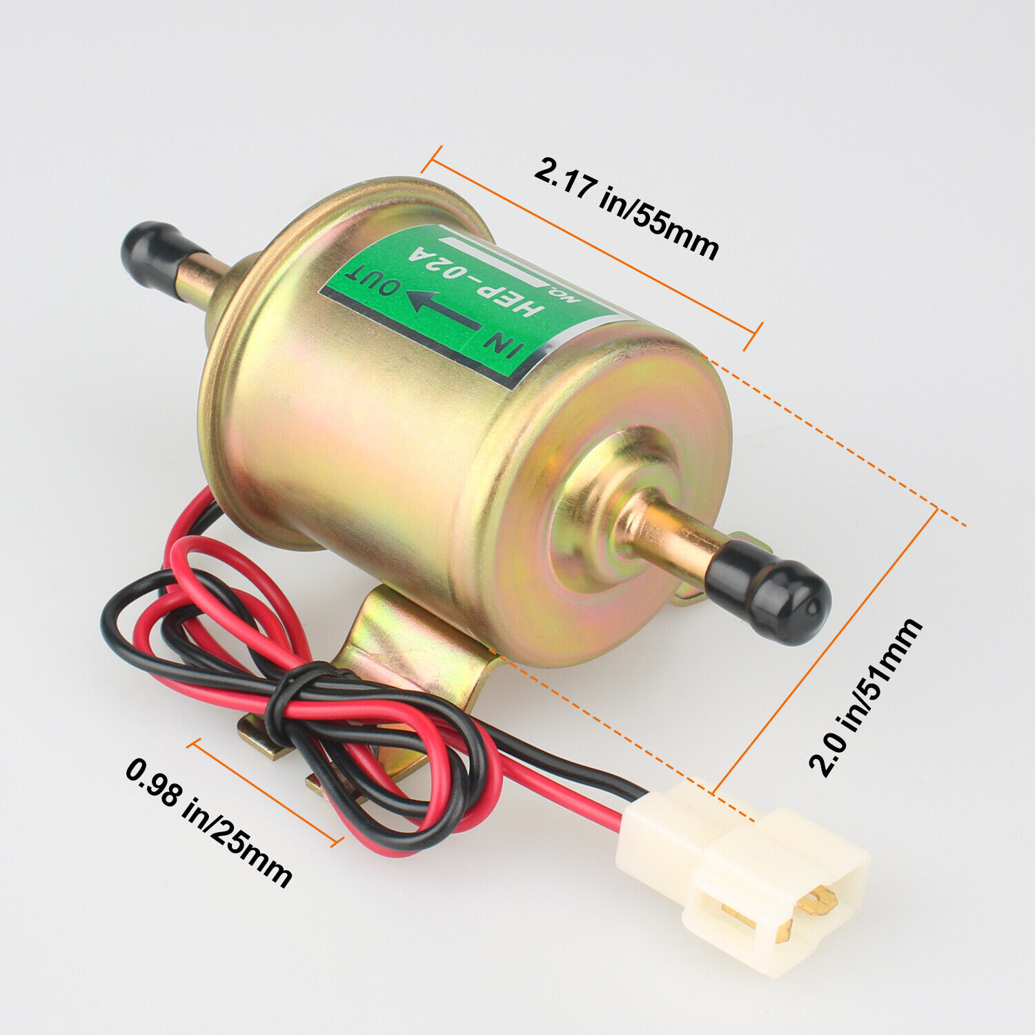 【Specification】Inline Fuel Pump, Output Pressure : 2.5-4 psi, Voltage : 12 Volt, Flow Rate : 30 GPH, Hose Size : 8 mm ( 5/16 inch ).