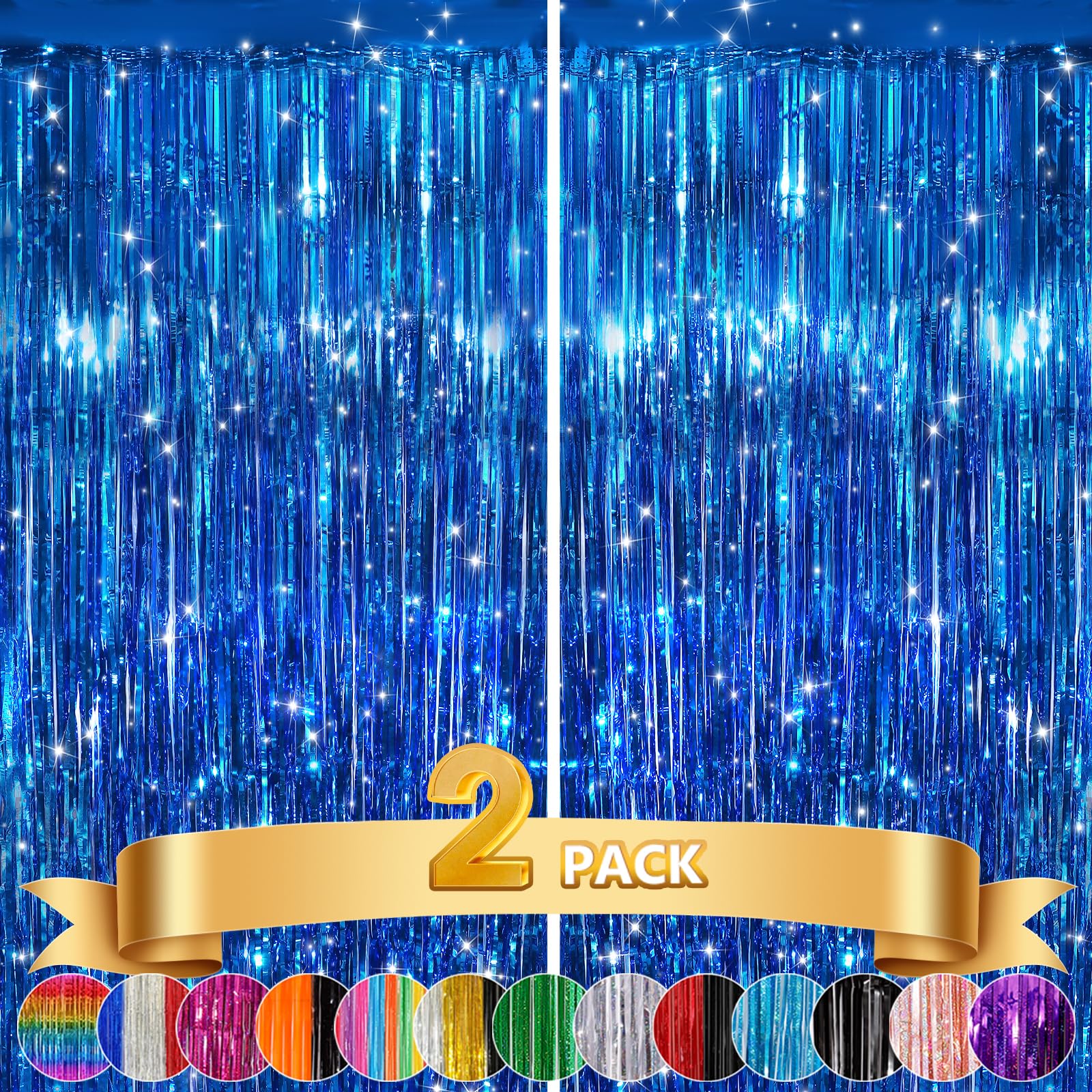 2Pack Blue Tinsel Backdrop Streamers, GCB Party 79"W x 79"L (Pack of 2),
