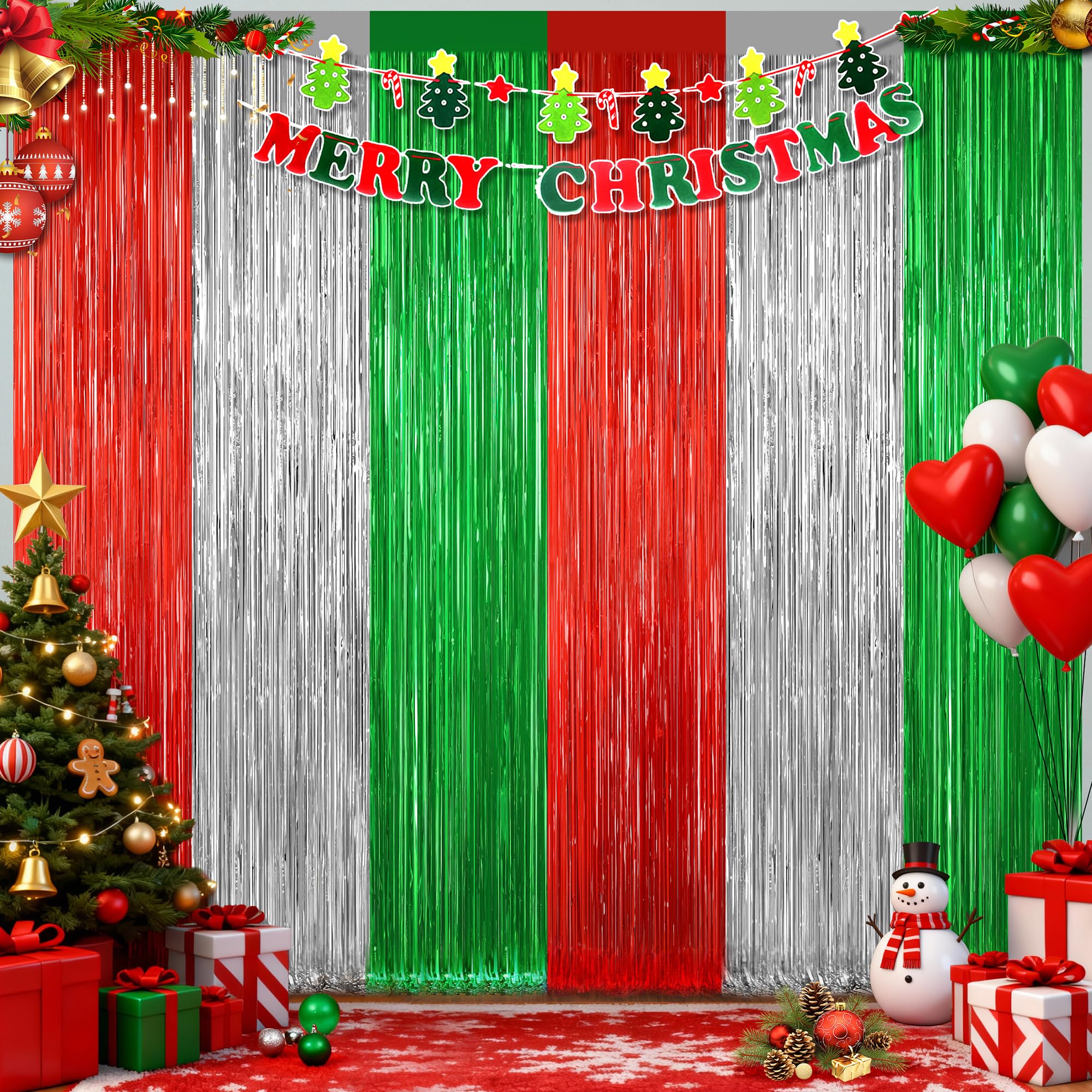 2 Pack Christmas Backdrop, Red Silver Green Party Streamer,
