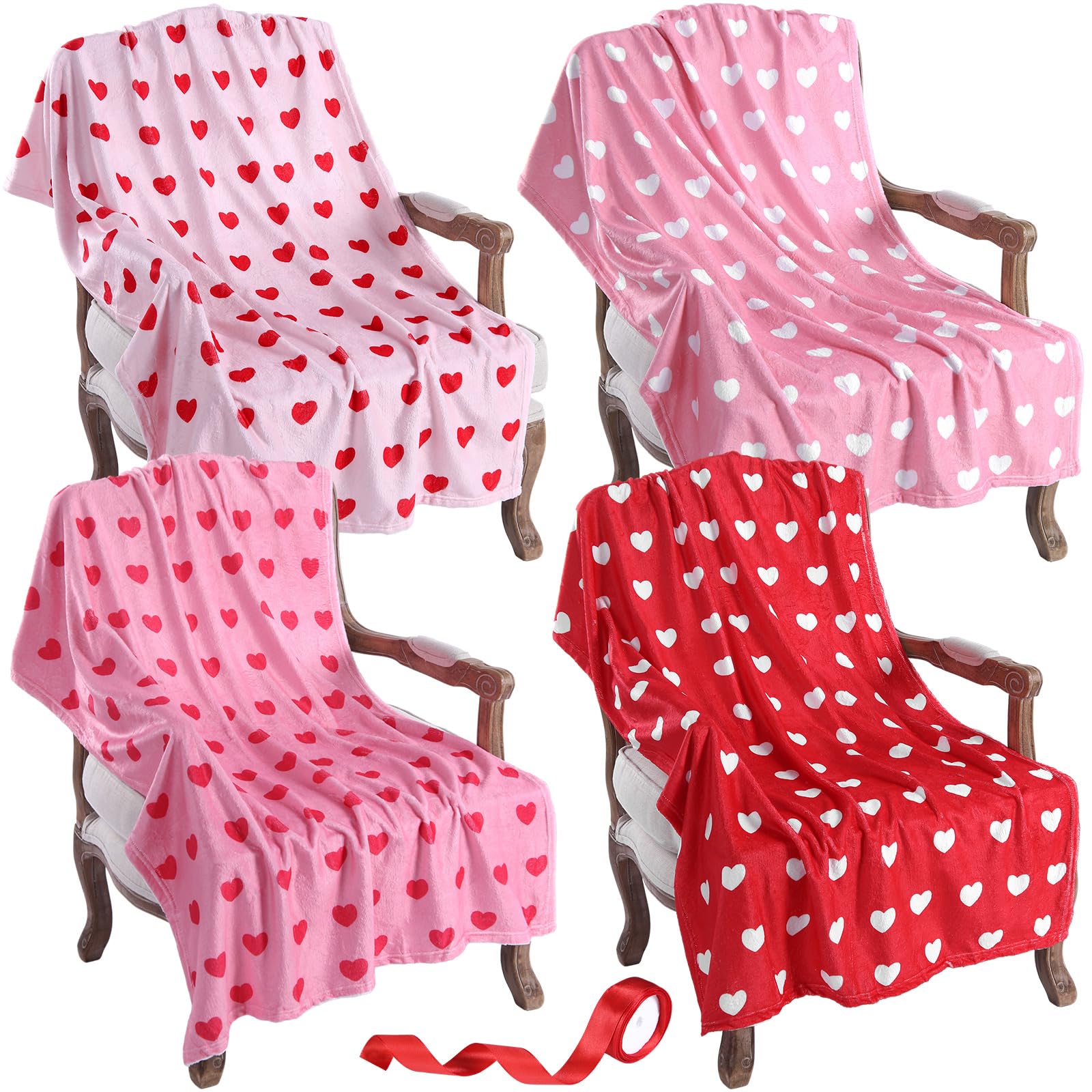 - Romantic Valentine's Day Gift Set: Comes with 4 soft heart flannel throw blankets and a generous 11-yard red ribbon, making it easy to create beautifully wrapped Valentine's Day gifts that bring warmth, love, and a sweet romantic touch to couches, sofas, beds, offices, and all-season decor