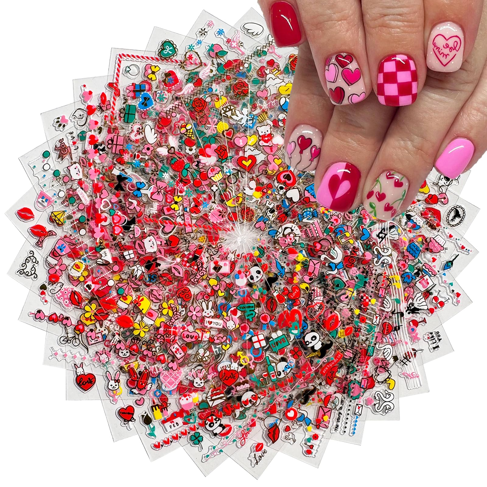- Heart Nail Art Stickers: You will get 30 styles Valentine's Day nail decals,satisfy all your love for beautiful nails, a variety of elements for you to choose from to DIY your own nail art designs.