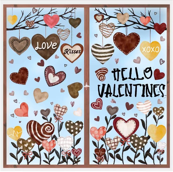 - 【Romantic Valentine's Day Decoration】: Our Valentine's Day window stickers set comes with 6 different designs of sticker decal, containing a total of 60 patterns in a charming chocolate-colored heart design featuring heart-shaped trees and heart-shaped flowers with “KISSES”, “LOVE”, “XOXO” and ‘HELLO VALENTINES’ words and phrases that complement each other, adding a festive, warm and charming atmosphere to your celebration. Ample quantity and exquisite design can meet your different decorative needs and give your partner a special surprise.