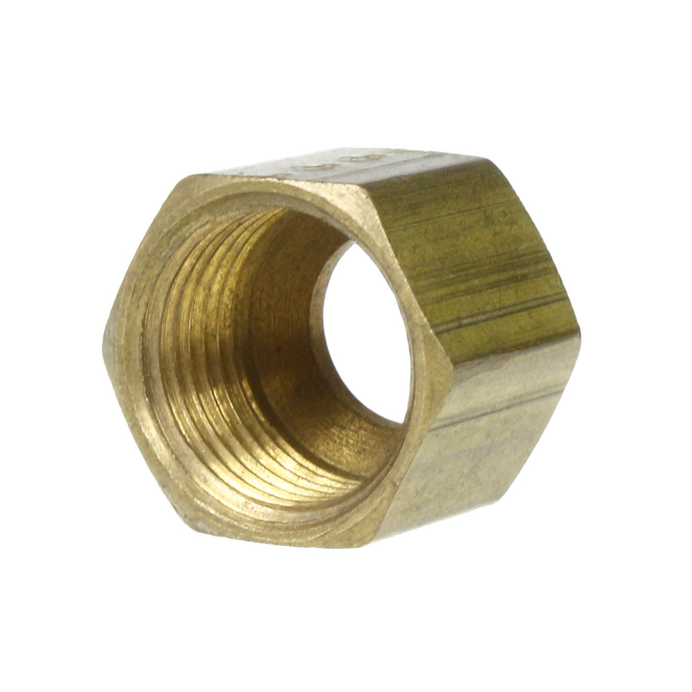 Use this 5/16" brass compression nut with copper, aluminum, and thermoplastic tubing. Not recommended for steel tubing. Manufactured for low and medium pressure tubing connection work where excessive vibration or tube movement is not involved. Not recommended for application using gaseous media.