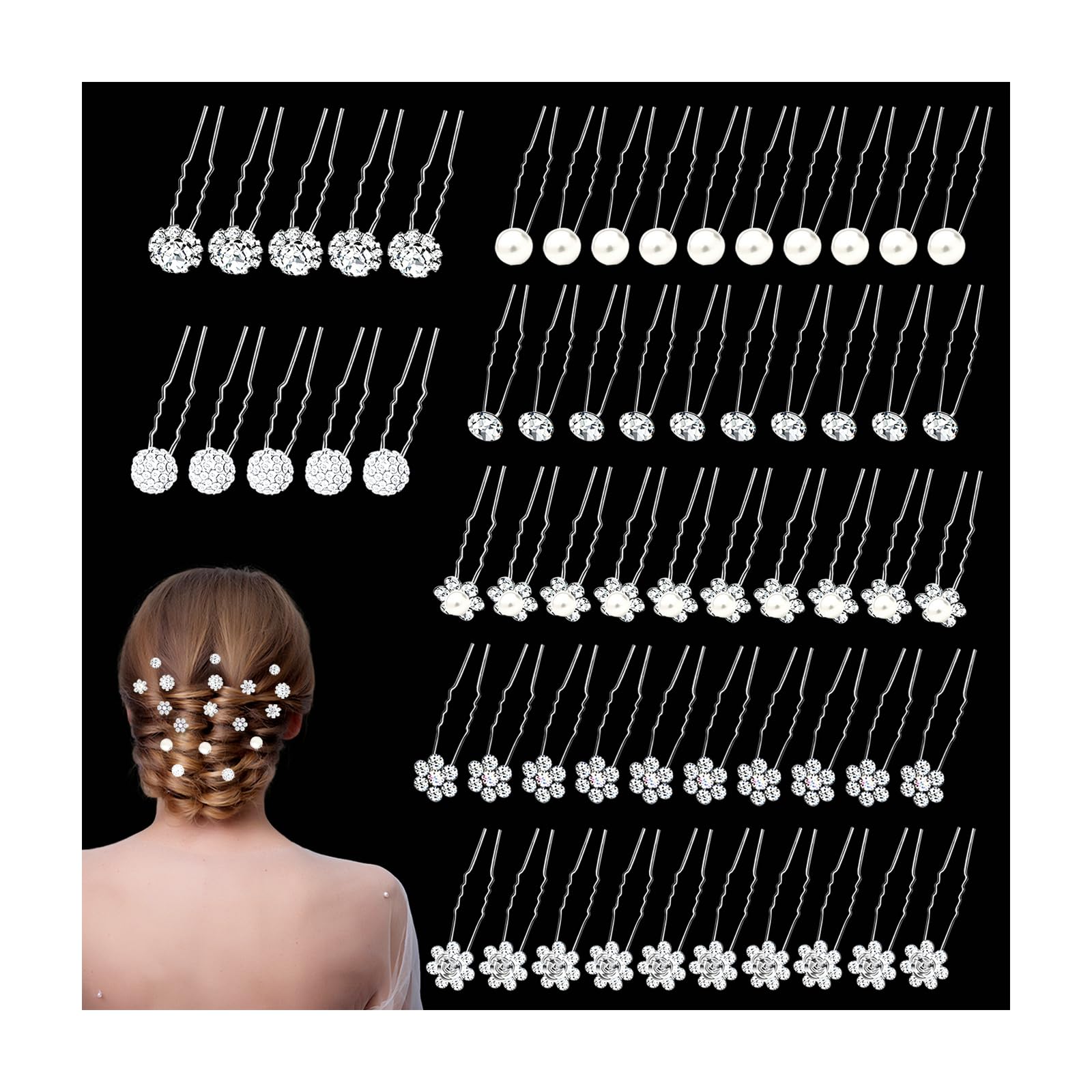 - ✅HAIRPINS ARE EASY TO USE AND REMOVE: The u-shaped bridal hair accessories are open. slide it in slightly, then turn it and slide it in the other direction. The hair pins for buns will not cause damage, unlike ordinary hair pins that will rub your hair and cause damage, proms accessories a good hairpin for buns, hair pins for women hair accessories