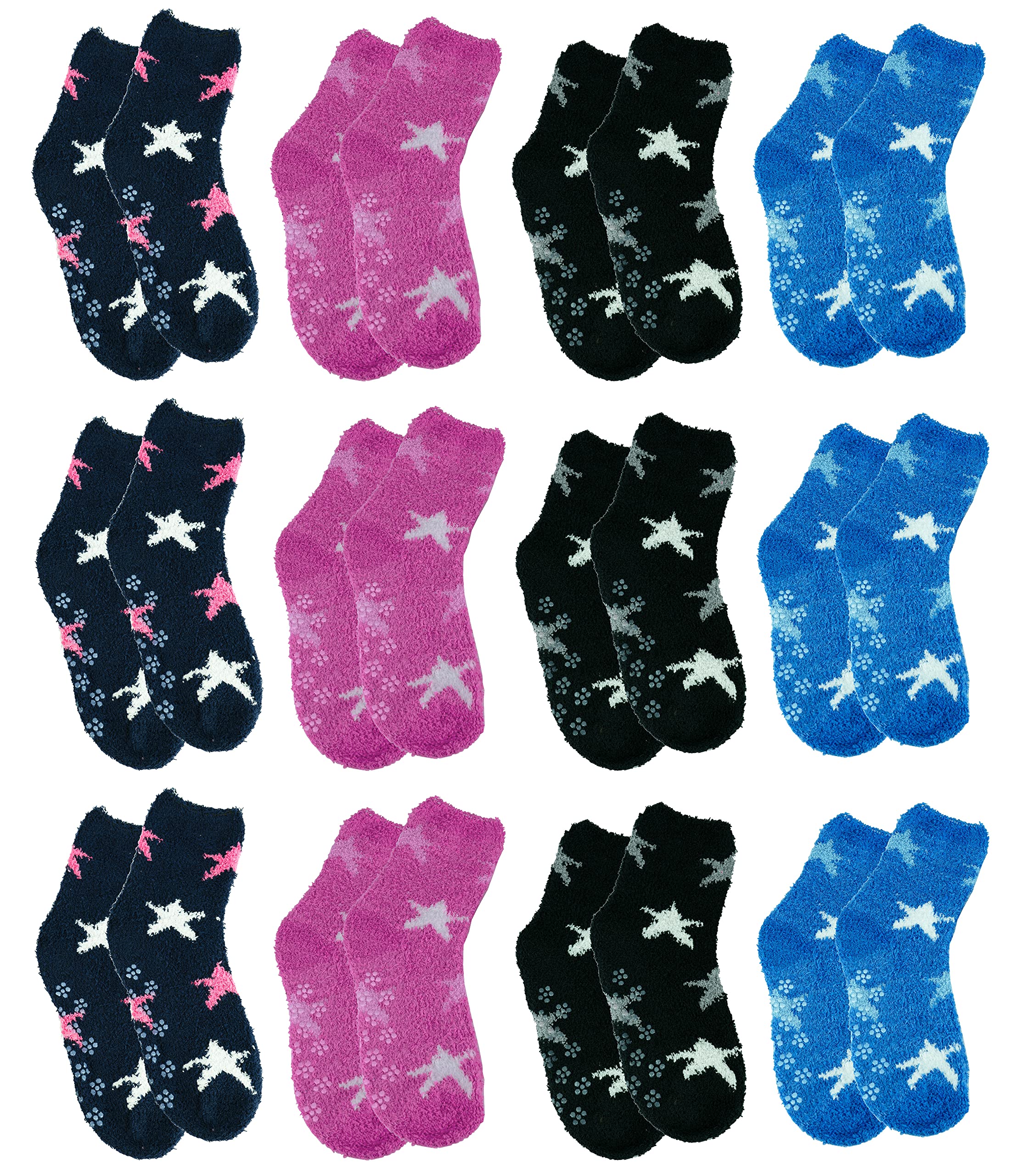 Womens Cute Fuzzy Socks Ultra Soft Fluffy Plush Gripper Non Skid Slip Hospital Slipper Grippy Cozy Socks 12Pairs! 10-S1110