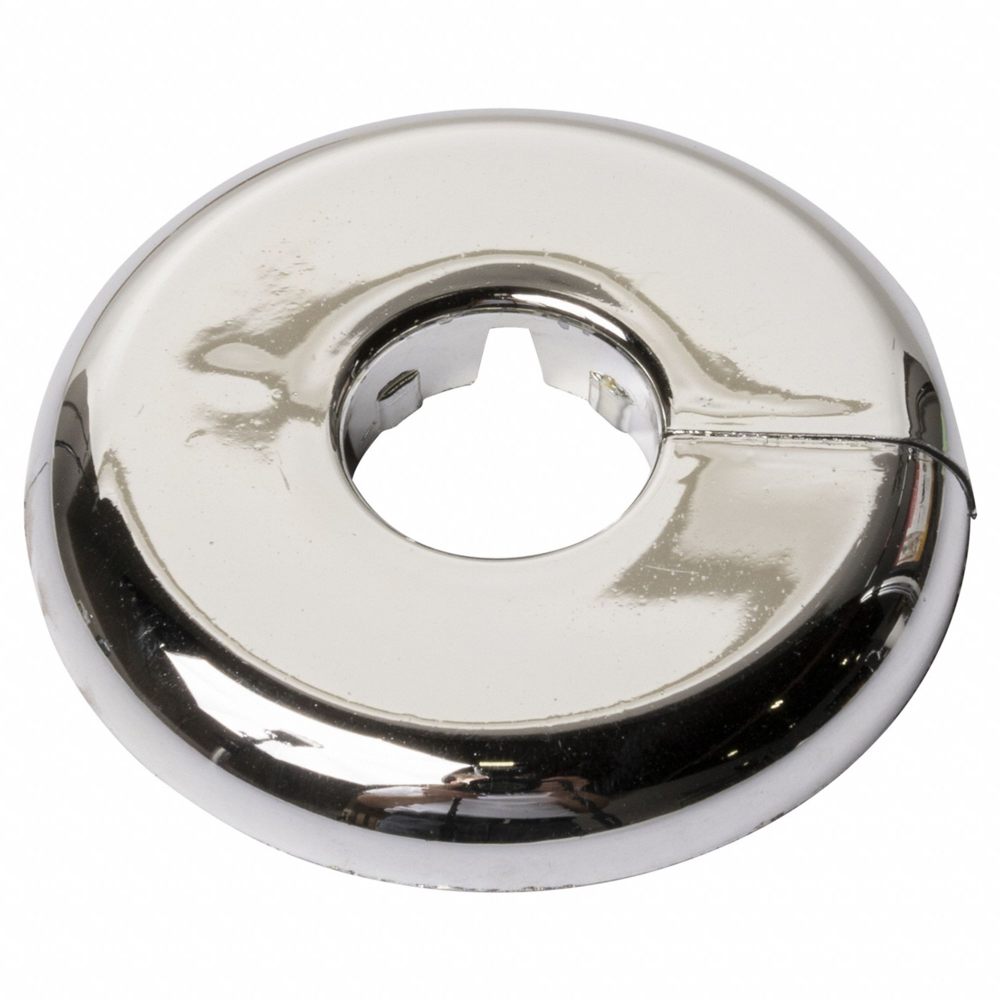 Split Flange, Overall Diameter 3 7/8 in, Overall Width 3 7/8 in, Shape Round, Product Type Split Flange, Includes Split Flange, Finish Chrome, Overall Length 3 in, Material Plastic, Color Silver, Overall Height 1/4 in, Ligature Resistant No, Fits Pipe Size 1/2 in, Thread Size Not Applicable, Fits Drain Size 1/2 in, Connection Type Threaded