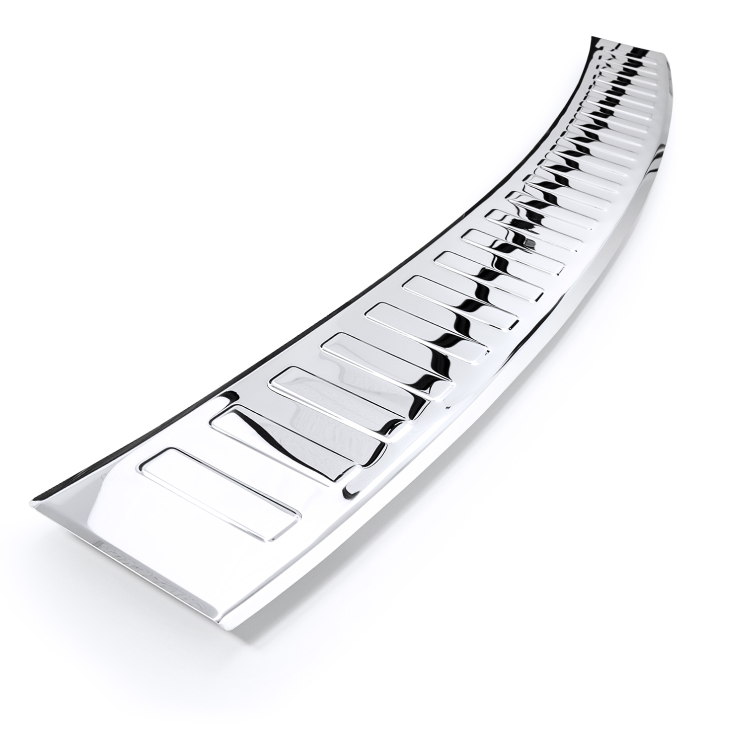 Edelstahl Ladekantenschutz aus feinstem V2A mit rundum Abkantung. Hochwertiger Lackschutz vor Kratzern, Beschädigungen und Druckbelastungen im Ladebereich.