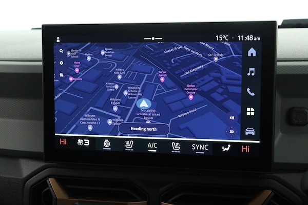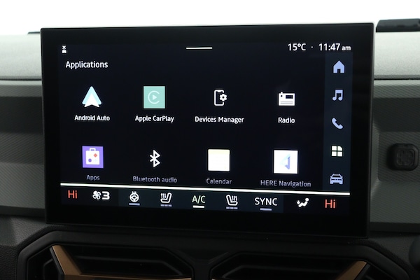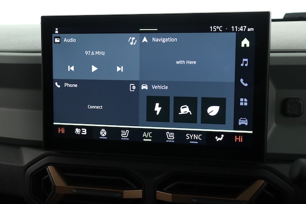 ..10'' Digital Cluster, 10'' digital driver display, Adaptive cruise control, ADAS Disconnect (advance driving systems disconnect) - My Safety, Apple CarPlay and Android Auto, Blind spot warning, Driver attention warning, E Save, eCall emergency system, Eco mode, Electric power assisted steering, Emergency Stop Signal (ESS), Energy smart management, Event data recoder, Forward collision warning, Front and rear parking sensors, Lane departure warning with lane keep assist, Multi view camera, Rescue code, Speed limiter, Stop/start system, Traffic sign recognition with speed alert/Intelligent speed assist (ISA), Wireless phone charger, 10.1'' media nav live with connected navigation, DAB, smartphone replication, bluetooth, connected services, USB-C plug (front and rear),plus app store, Arkamis sound system with 6 speakers, Auto lighting system, Automatic wipers, Black with white trim radiator grille, Body coloured door handles, Copper rear Dacia lettering, Copper Y-Shaped air vents inserts, Dark glass, ECO LED Front foglights, Electric adjustable/heated door mirrors, Electric front windows with driver's one touch operation, Electric rear windows, Front and rear body coloured bumpers, Grey modular roof bars, Heated rear windows with wash wipe, High beam assist, High level third rear brake light, LED automatic daytime running lights, Panoramic opening sunroof, Privacy rear window, Rain sensor, Rear side wing doors, Shark fin antenna, Side protection, Tinted acoustic windshield, Turning signal integrated in door mirrors, Wheel arch protection and snorkel in starkle, Y-shaped LED lighting signature, 3 rear height adjustable headrests, 3 seat bench in 2nd row, 4 way adjustable front passenger seat, 40/20/40 rear bench with an easy fold function, 6 way adjustable driver seat, Dual zone automatic air conditioning, False floor, Front and rear rubber floor mats, Front head restraints, Gear shift indicator, Grey gear lever deco part, Heated front seats, Heated steering wheel, Height adjustable front headrests, Height and depth adjustable steering wheel, High console with cooling storage + armrest, Isofix points for child seats in both outer rear seats, MicroCloud fabric washable TEP upholstery, Mid centre console micro cloud with soft feel, Rear 12v plug in boot, Removable parcel shelf, Rubber reversible boot mat, Single front passenger seat, Sunvisor for driver and passenger with mirror/ticket holder and light, Synthetic leather steering wheel, White steering wheel