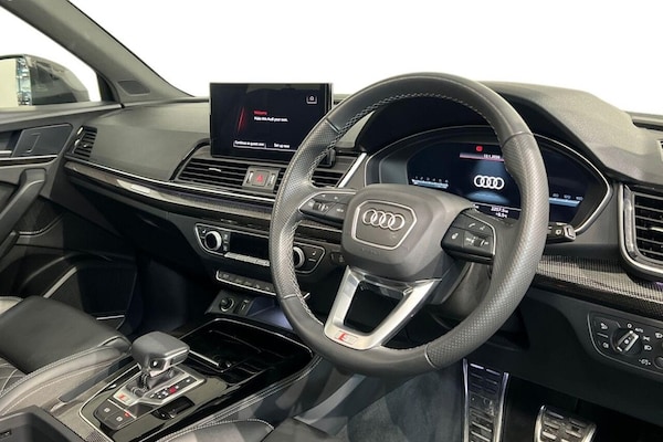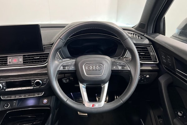 This 2024 Audi SQ5 TDI V6 Vorsprung is a superb example, having had only one owner since new. This premium SUV boasts a powerful 3.0 litre diesel engine paired with a sophisticated four wheel drive system, ensuring excellent performance and grip in all conditions. As a Euro 6 compliant vehicle, it meets stringent emission standards. The Vorsprung trim level signifies the highest specification, offering an array of advanced features designed for comfort and convenience. Experience exhilarating acceleration with a 0-60mph time of just 5.1 seconds, demonstrating the dynamic capabilities of this SQ5. The S Technology Pack Pro enhances the driving experience with a Head Up Display, Keyless Entry, and a fixed Panoramic Sunroof, while the City Assist Pack includes Blind Spot Assistance for added safety. Comfort is paramount, with heated front and outer rear seats, and a heated 3-spoke leather multi-function steering wheel. The large boot space provides ample room for luggage or shopping, and with a towing weight of 2400 kg, this Audi SQ5 is as practical as it is powerful. Lifetime warranty available on this car, plus a £1,000 finance contribution when you part exchange. Voted UK Car Supermarket of the Year two years running, we offer 0% finance, part exchange, and lifetime warranties across our entire range. Every car is thoroughly inspected before sale and comes with a full history check, so you can buy with complete peace of mind. Buy with confidence on our best finance rates. Proud winners of the CarGurus Top-Rated Dealer 2022 and the MotoNovo Extra Mile Award. .2 USB Charging Ports, 21in Alloy Wheels - 5-V-Spoke Offset Design - Anthracite Black - Audi Sport - Gloss Turned Finish, 24-litre AdBlue Tank and 70-litre Fuel Tank, 6-Airbag System, Air Vents - Inserts and Centre Console in Gloss Black, Anti Theft Locking Wheel Bolts, Anti-Theft Alarm, Attention and Drowsiness Assist, Audi Connect Navigation and Infotainment Services Plus - 3 Year Trial, Audi Connect Safety and Service, Audi Connect with Amazon Alexa Integration, Audi Drive Select, Audi Virtual Cockpit Plus - 12.3in Screen and Three Different Layout Designs, Audi Wireless Smartphone Interface, Auto Dimming and Frameless Rear View Mirror, Automatic Headlight and Windscreen Wiper Activation, Automatic Start-Stop with Coasting Functionality and Efficiency Programme, Black Roof Rails, Black Styling Package, Carbon Door Mirrors, Chrome-Plated Exhaust Trim, City Assist Pack, Cloth Headlining in Black, Comfort Front Centre Armrest - Height Adjustability and Slide Function, Contrast Stitching on Seats - Steering Wheel and Gear Lever Gaiter, Convenience Key with Electric Hands-Free Boot Opening System, DAB Digital Radio, Daytona Grey, Deluxe 3-Zone Electronic Climate Control, Door Mirrors - Electrically - Folding Heated and Auto Dimming with Memory Feature, Door Sills in Selenite Silver, Driver Assistance Pack, Electric Child Locks for Rear Doors, Electric Windows - Front, Electromechanical Parking Brake, Electromechanical Power Steering, ESC - Electronic Stabilisation Control inc ABS - ASR and EDL, Extended Interior Upholstery Pack, Fine Nappa Leather - Sport Seat with S Embossed Logo - Black, First Aid Kit and Warning Triangle and Safety Vests, Front Air Inlet Surrounds in Aluminium, Front and Rear Floor Mats, Front and Rear Parking Sensor with Acoustic Warning, Front Radiator Grille in Honeycomb Design, Gear Lever in Black Leather, Heated 3-Spoke Leather Multi-Function Steering Wheel, Heated Front and Outer Rear Seats, High Gloss Package, Hill Descent Control, Hill Hold Assist, Illuminated Door Sill Trims with S Logo - Front, Inlays - Carbon Atlas, ISOFIX Child Seat Mounting for Front Passenger and Outer Rear Seats - including Top Tether Attachment for the Outer Rear Seats, Lane Departure Warning, Loading Edge Protection in Stainless Steel, Luggage Compartment Cover, Massage Function For Front Seats, MMI Navigation Plus with 10.1in Touchscreen, Multi Collision Brake Assist, OLED Rear Lights - Design 1, Pedals in Stainless Steel, Pop-Up Bonnet for Pedestrian Pro
