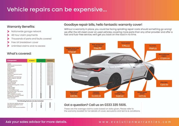 All cars come with our Standard 30 days warranty with the option to upgrade from 6m-12m or 24m which will cover parts and labour and you can also use your own local VAT registered garage.