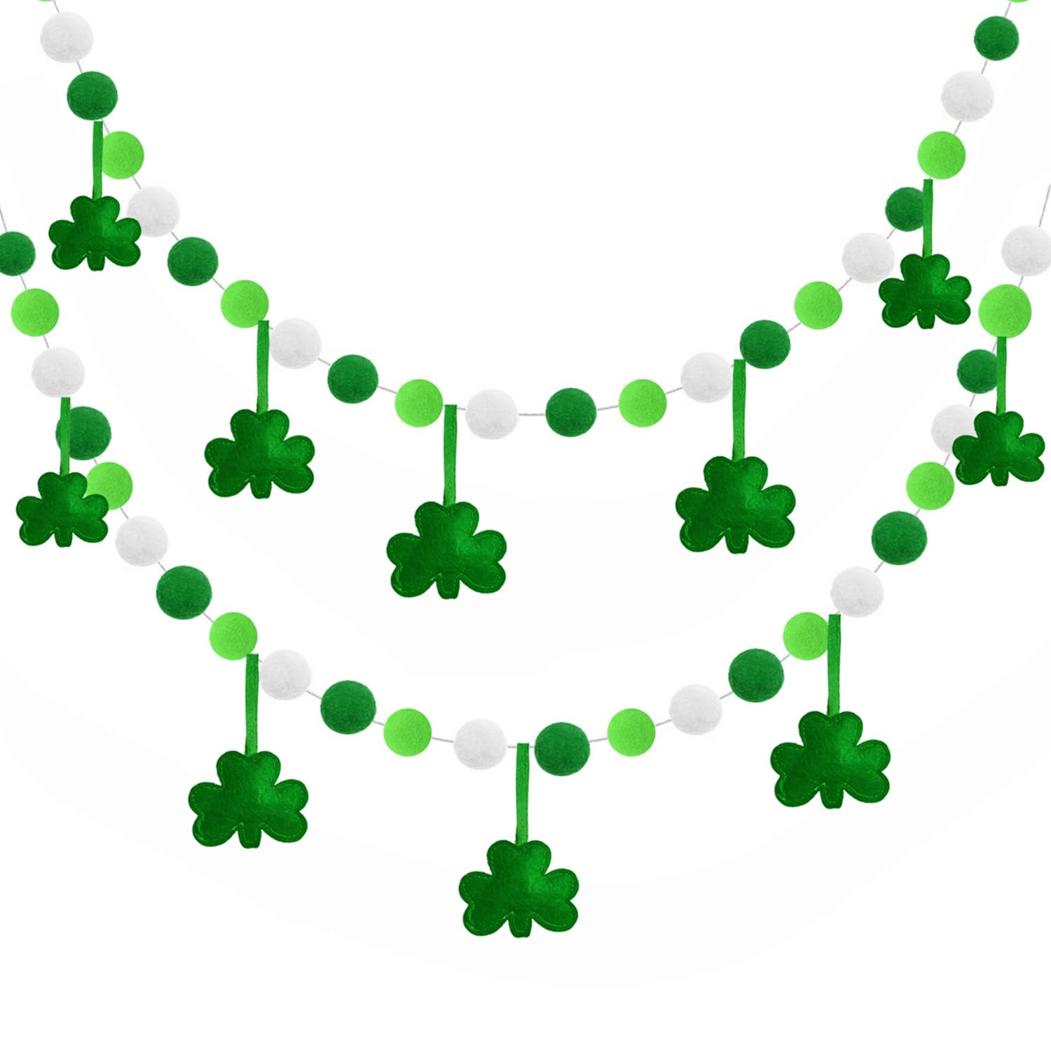 - Easy To Use - Our pom pom balls garlands are assembled in advance, and self-hang those shamrocks to the garland, and then open them and use the string attached to hang them on wall, fireplace, mantel, in the doorway, patio, glass window or as banner, dessert table or as backdrop, anywhere you like. Easy to remove and reuse without taking too much time and effort
