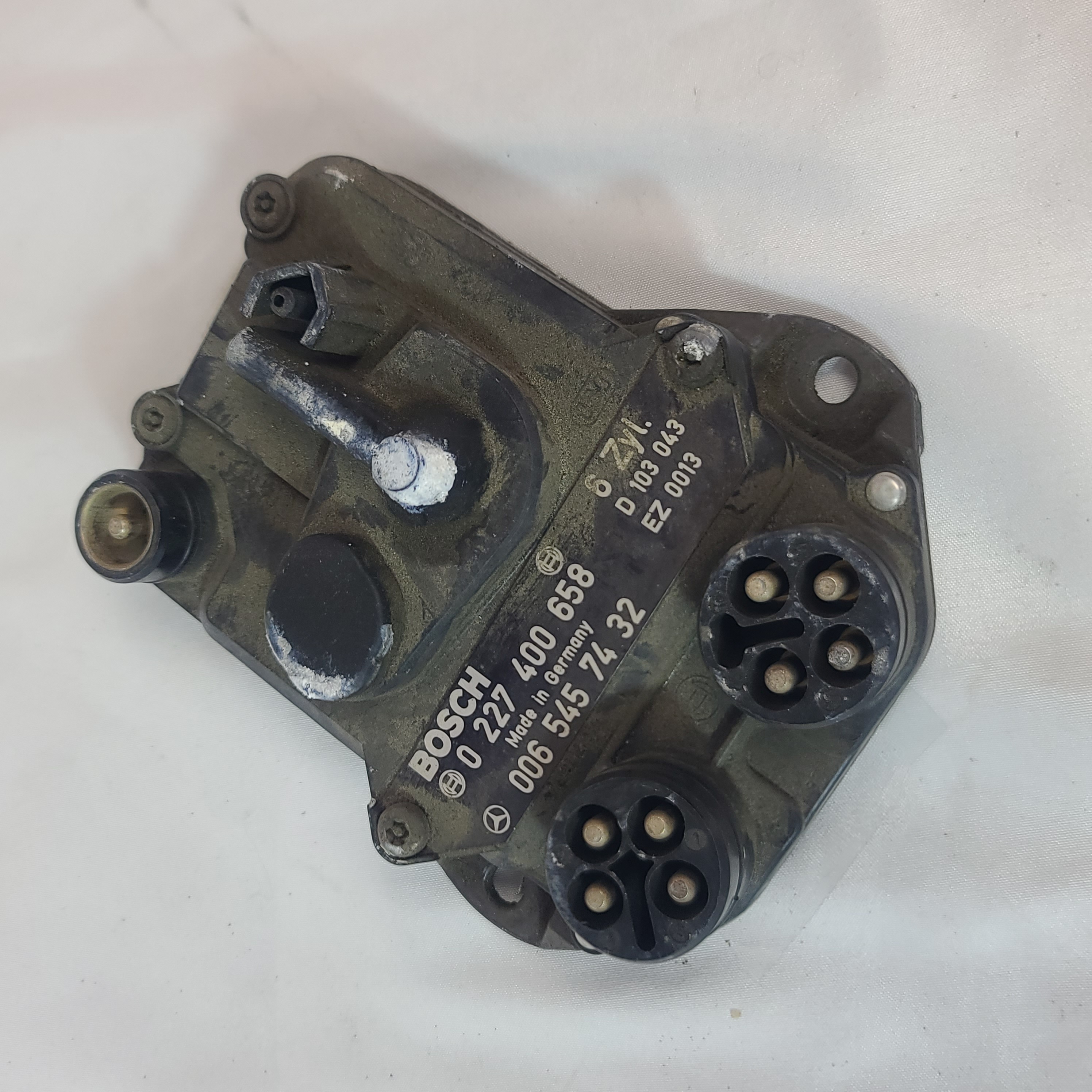 OEM EZL Ignition Control Module for Mercedes . Vacuum Connector Port is cracked. Shouldn't affect functionality.