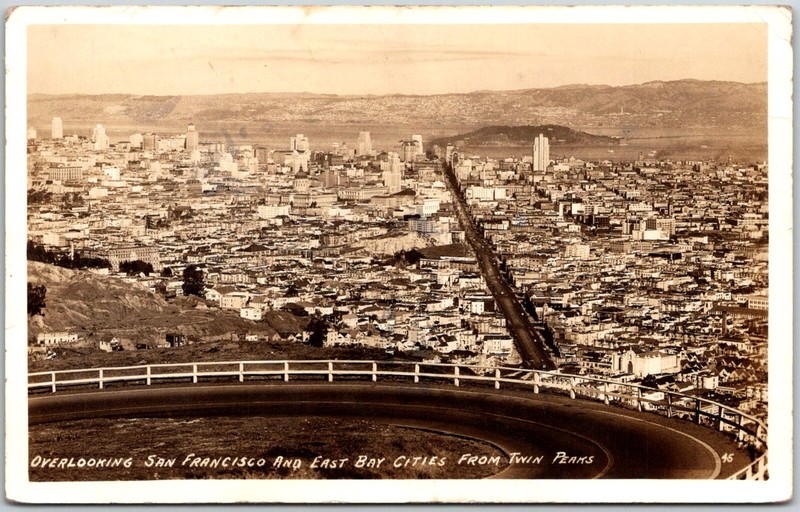 San Francisco California Overlooking City And East Bay Twin Peaks RPPC Postcard