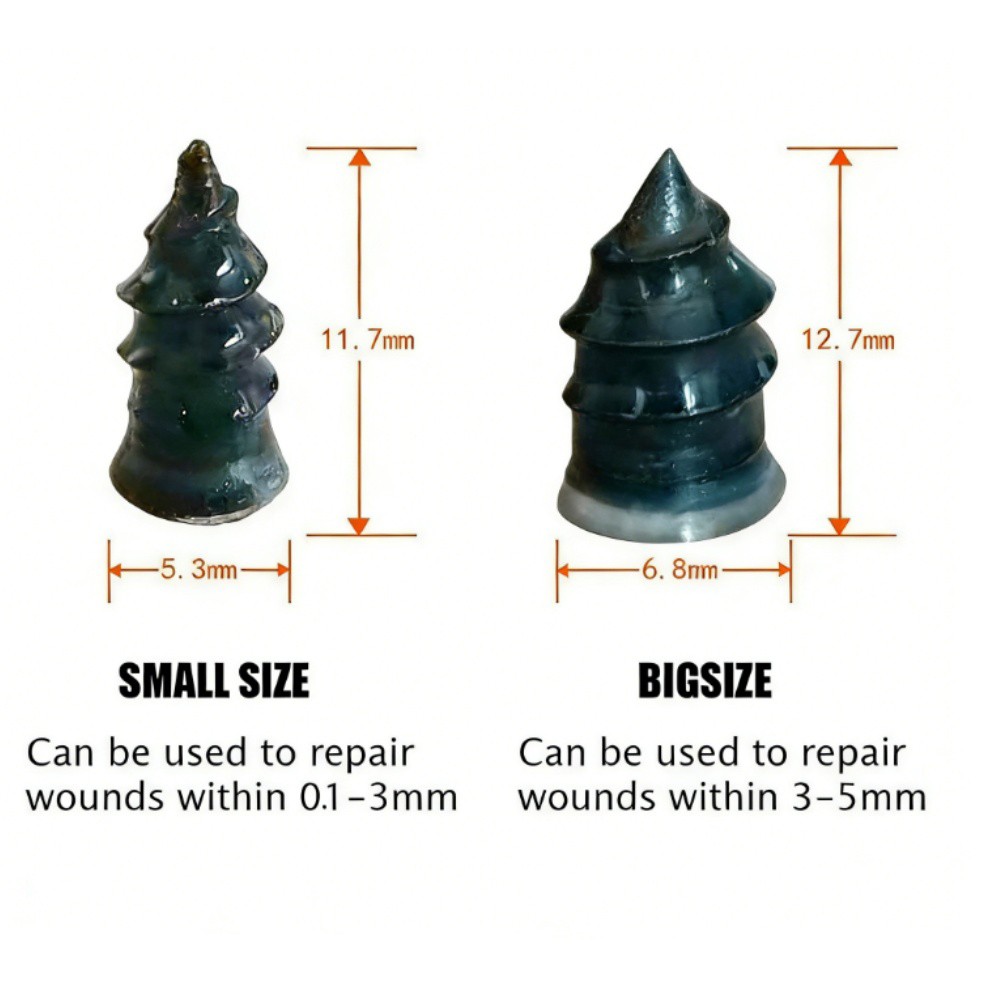 * Installation conviviale : le processus d'installation est simple - insérez simplement le clou dans la crevaison sans avoir besoin de retirer le pneu. La conception unique permet un vissage facile, rendant les réparations accessibles à tous.
