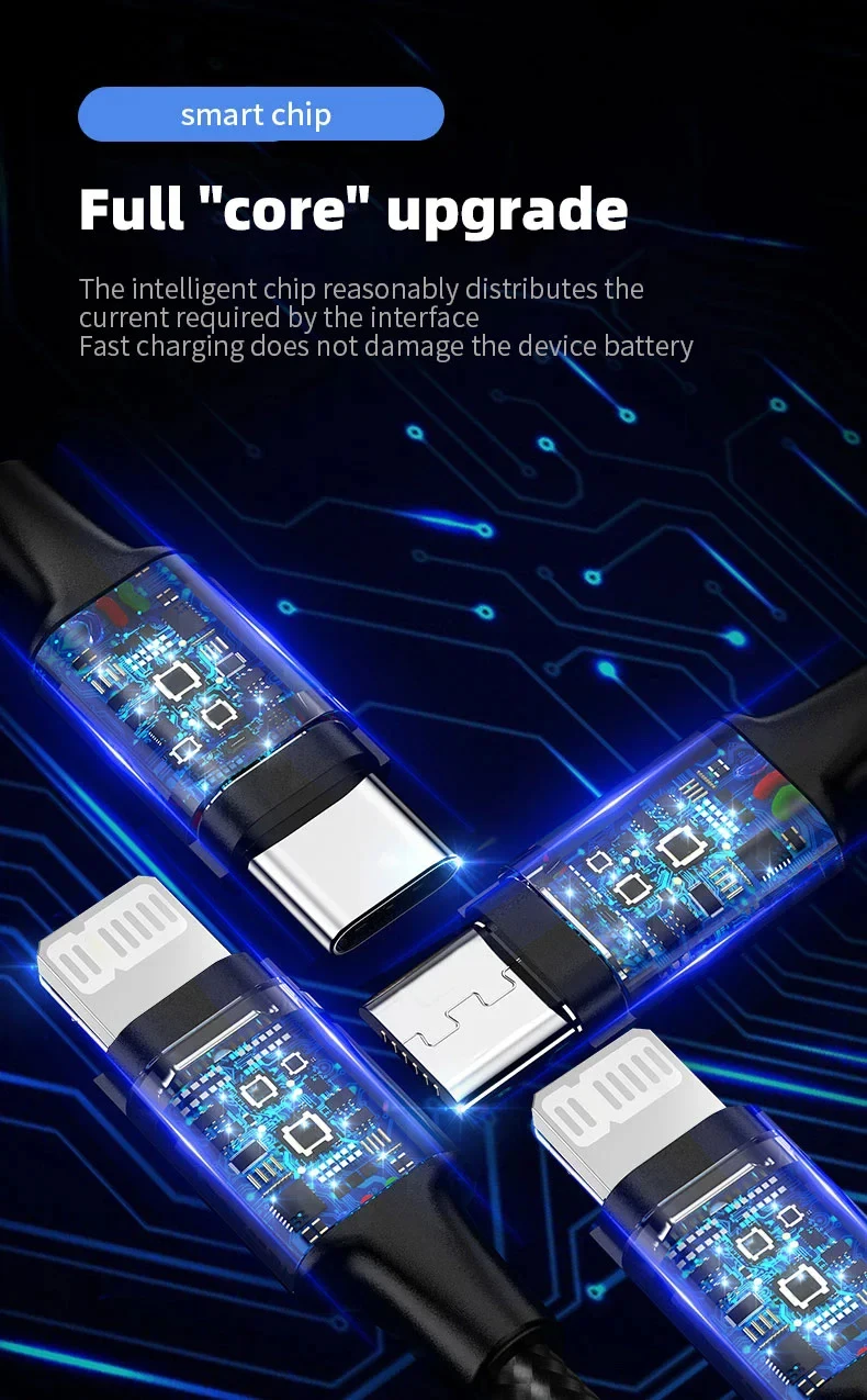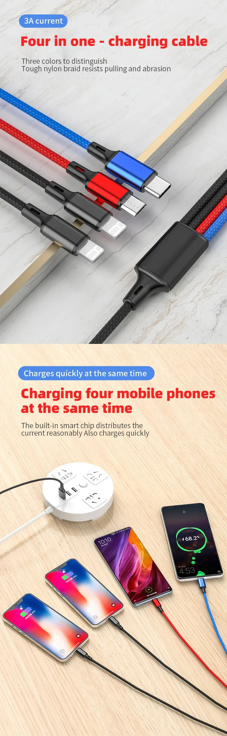 4 In 1 USB-Kabel für iPhone 3 In 1 USB A auf Micro Typ C Ladekabel 3A Schnellladekabel für Huawei Samsung Xiaomi