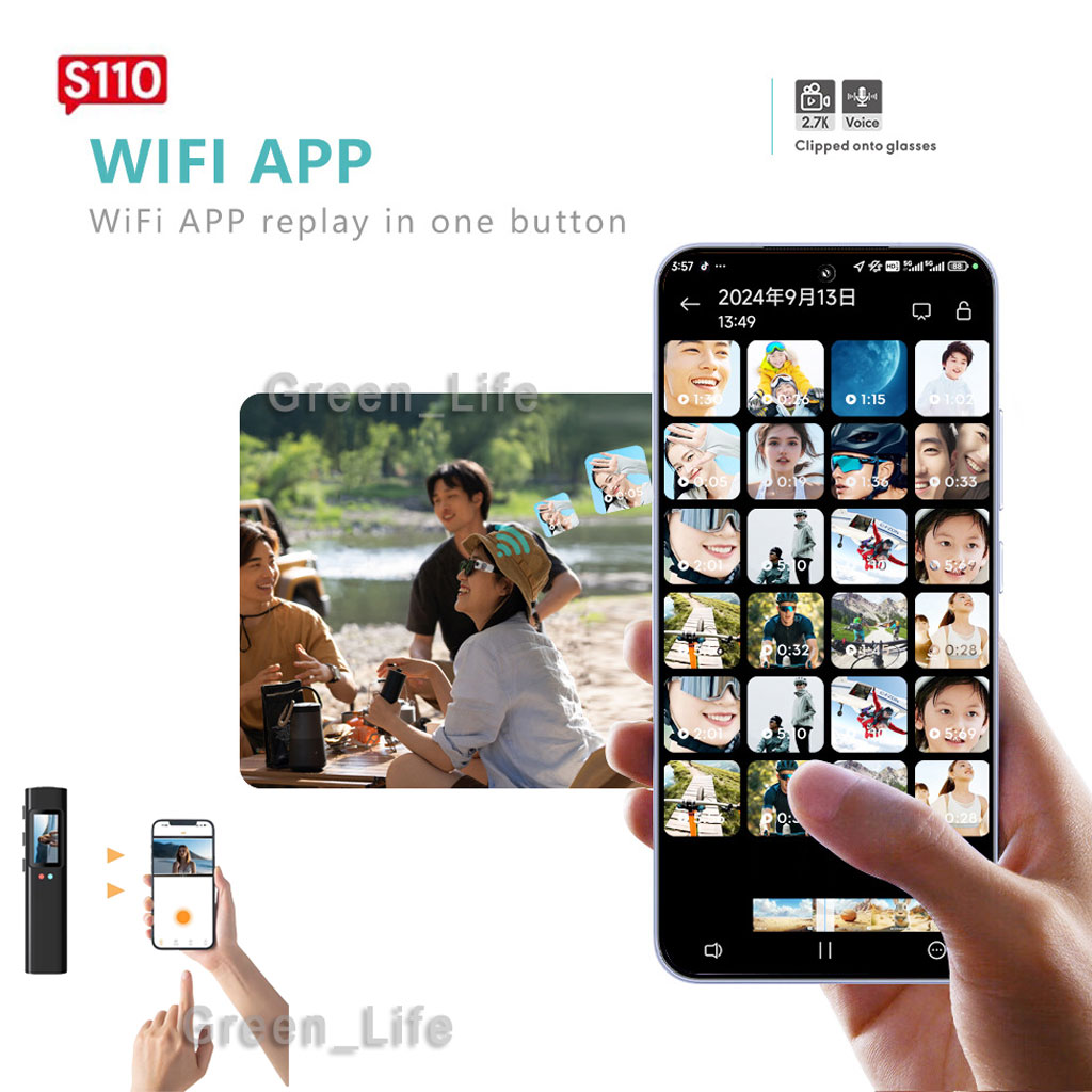 WiFi APP one-key preview: Connect the APP via WiFi, you can instantly preview, edit and manage recordings and photos.