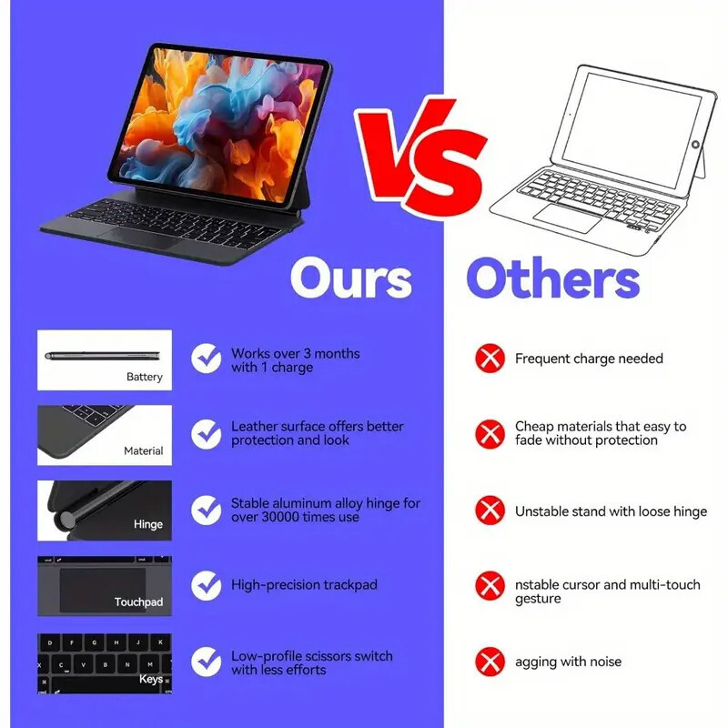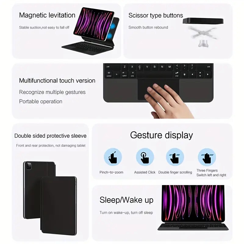 [Elevate Your iPad Pro 11 M4 Experience] Our cutting-edge magnetic levitating iPad Magic Keyboard, designed with premium soft-touch materials. The iPad Keyboard offers an exquisite tactile experience while doubling as a protective shell for your iPad