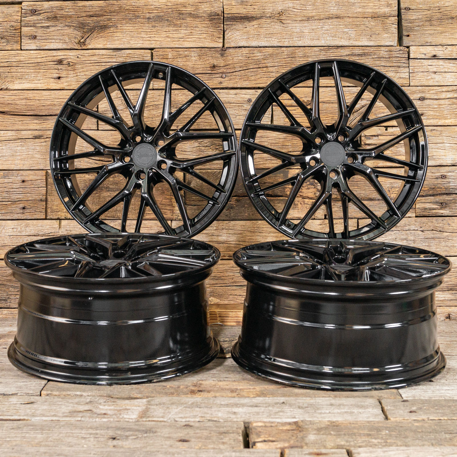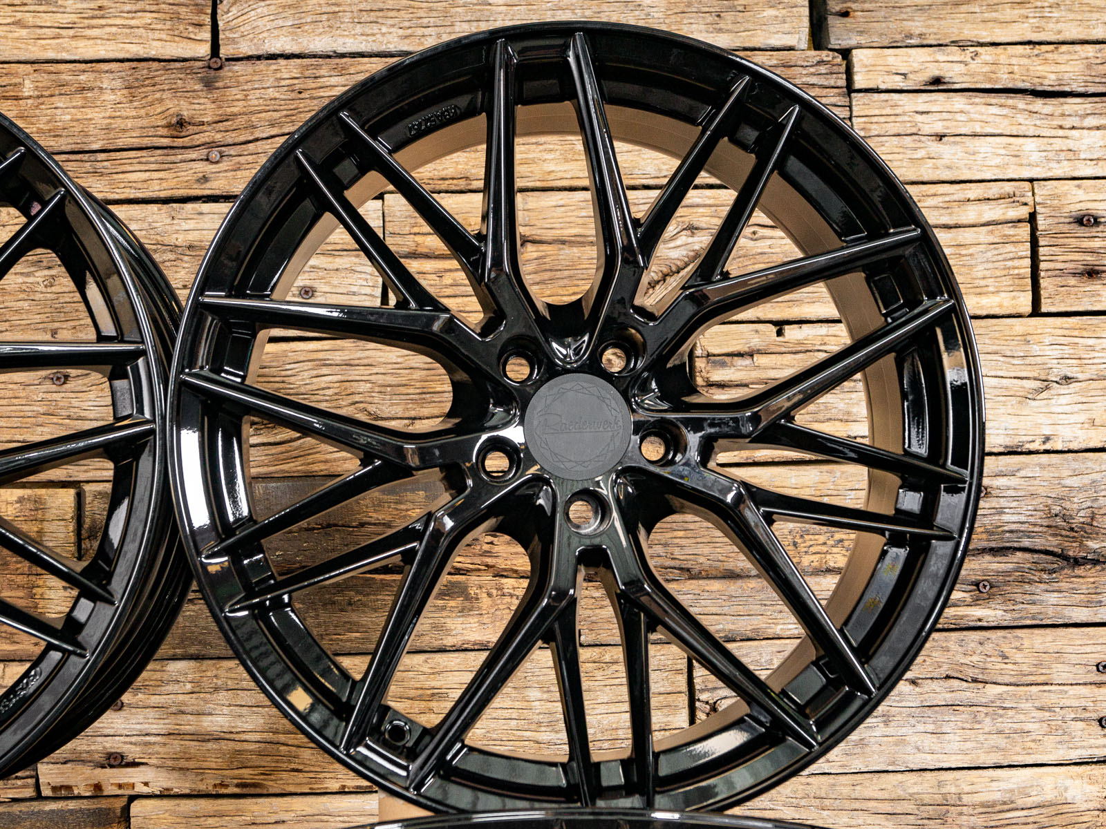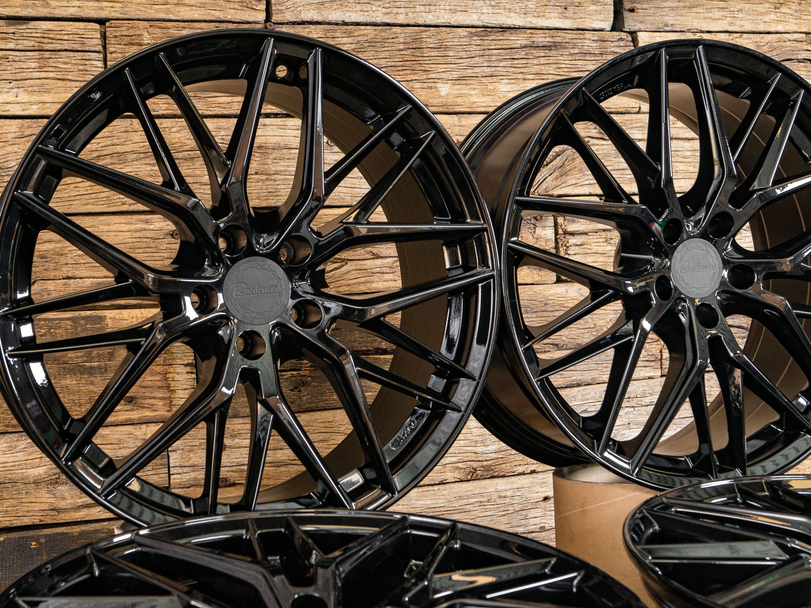 4x neue Alufelgen 18 Zoll ohne Reifen - RW01 8Jx18 ET35 5x120 Schwarz - 1x ABE - 4x Nabendeckel Raederwerk