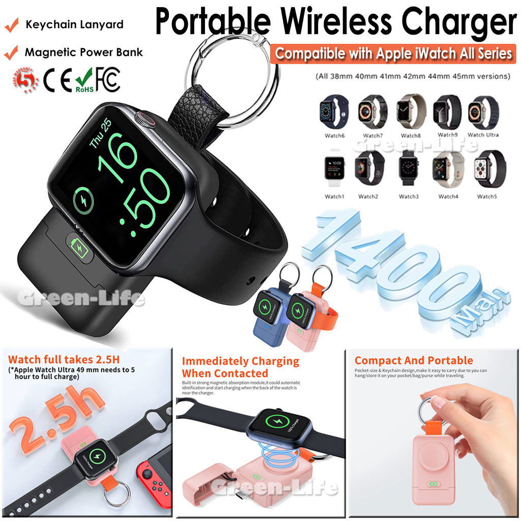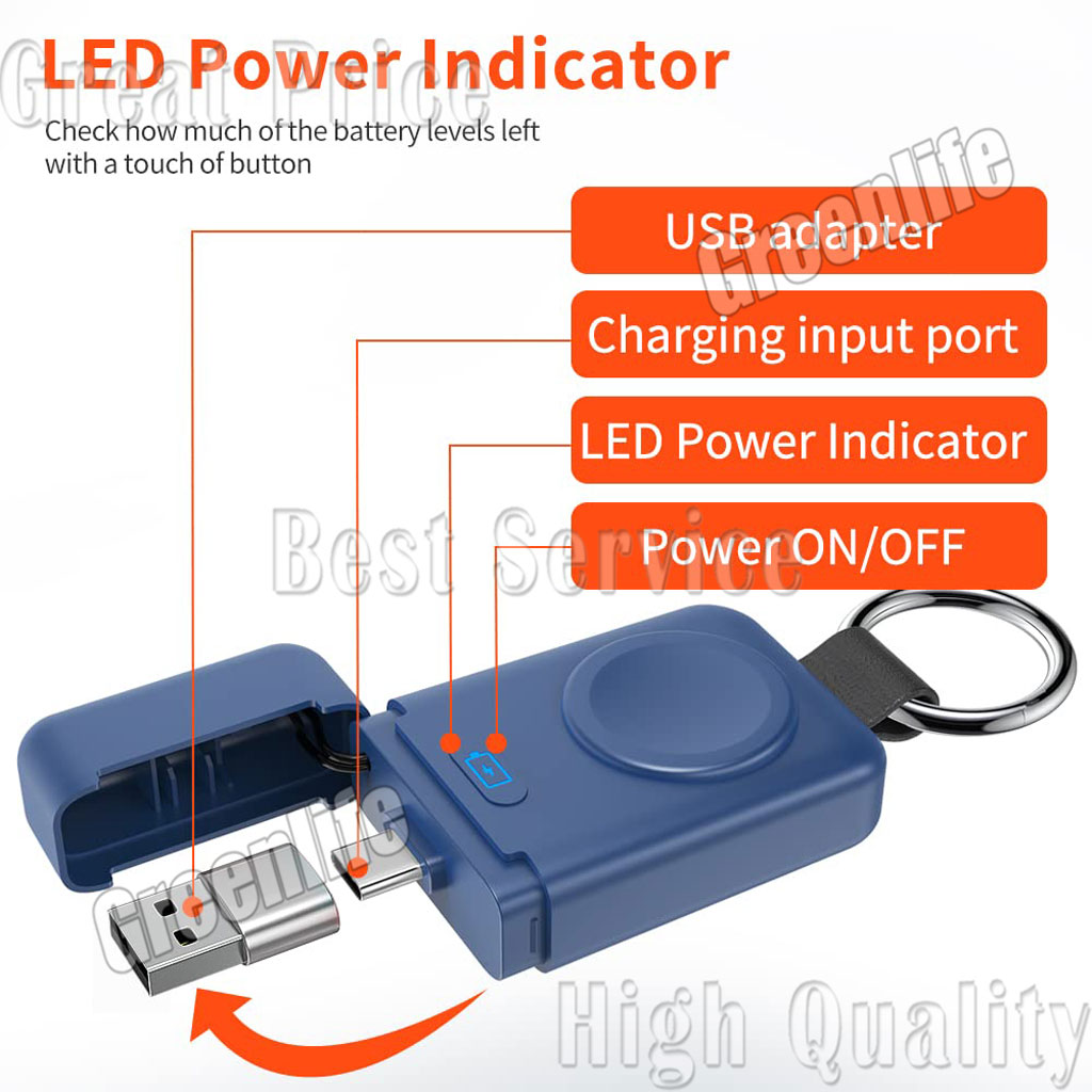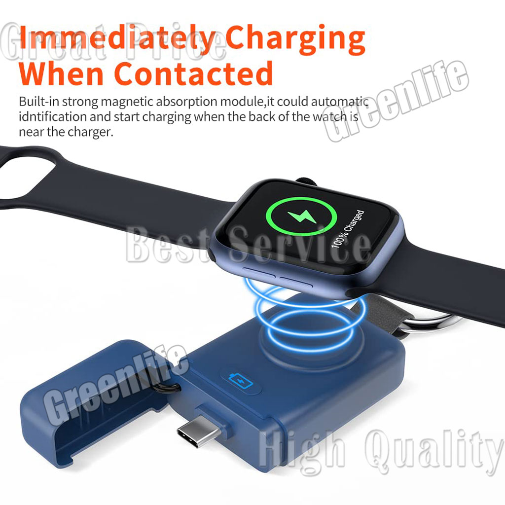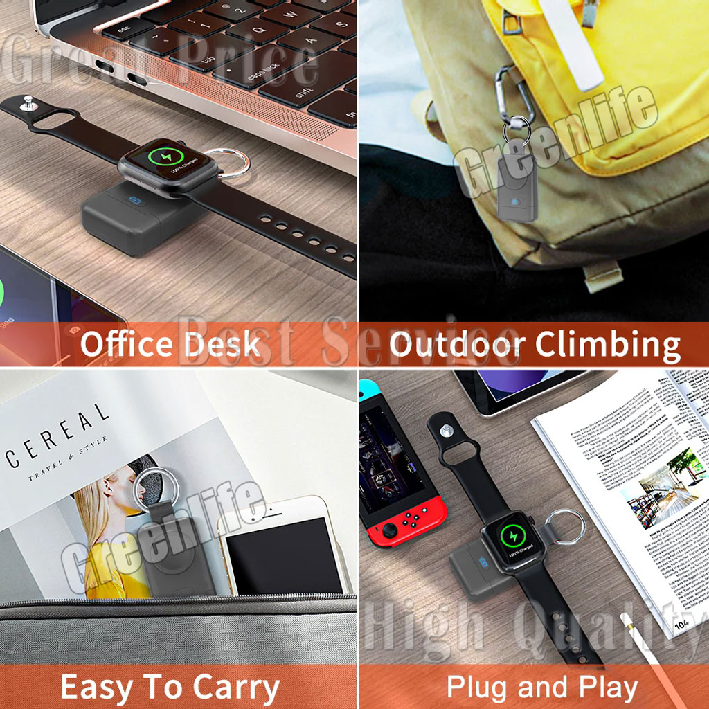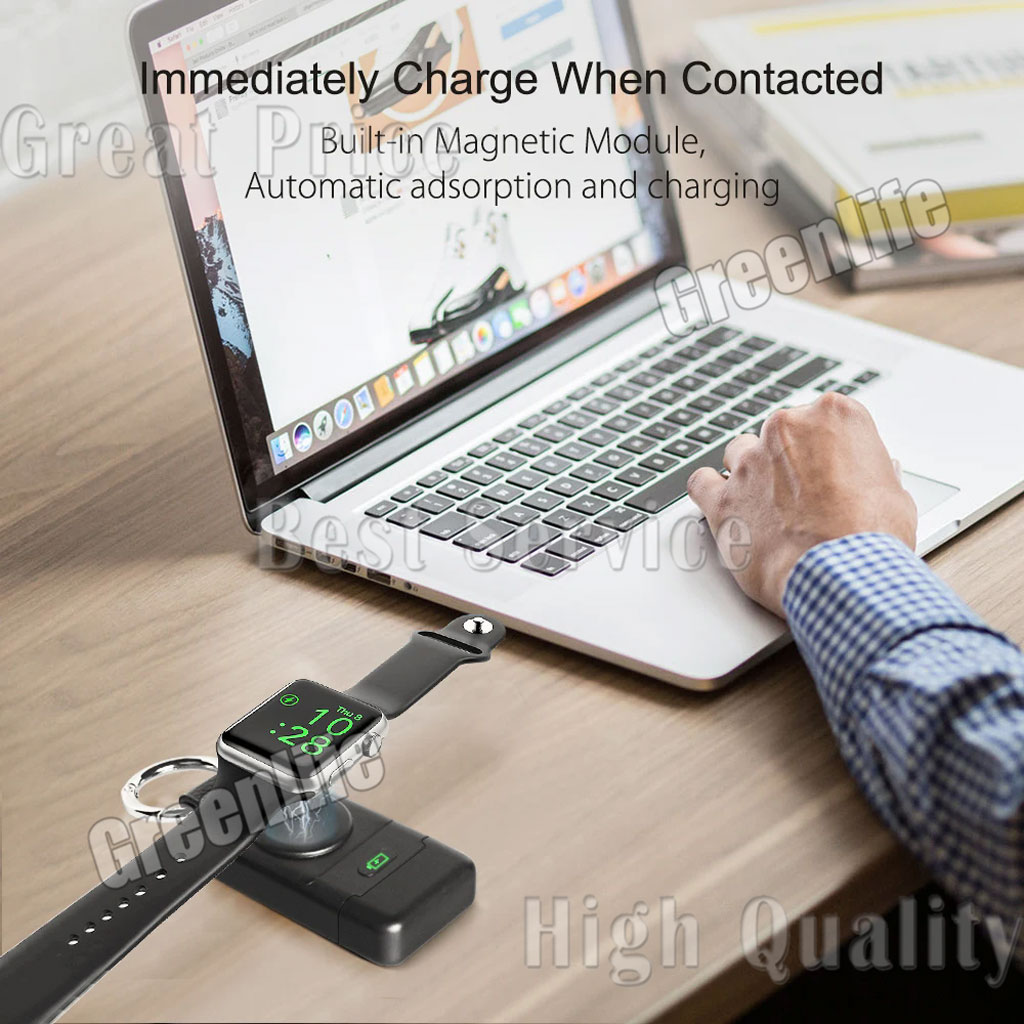 Portable watch charger: pocket-size and compact design with a keychain, allows you to carry it out with more ease and fits into your pocket or bag easily, combined with large-capacity power bank great for trips or traveling and With the magnetic charging module, you can charge your watch anytime, anywhere, instead of a long-charging cable or an oversized base when outdoors or traveling