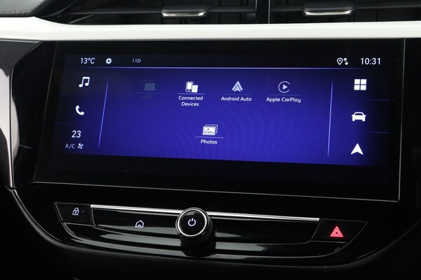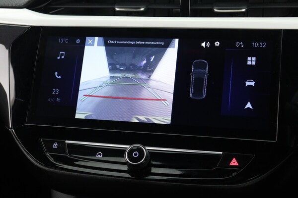 ..130 degree rear view camera, 7 inch digital instrument cluster display, Auto tele unit 3S vehicle communication system, Breakdown call (b-call), Central facia display with digital clock, outside air temperature and audio information, Cruise control with intelligent speed limiter, Drive modes (sport, normal, eco), Driver drowsiness alert system, E-call, Engine oil life indicator, Front and rear parking sensors, Front camera system, Instrumentation - Speedometer, rev counter, low fuel gauge warning light + water temperature gauge warning light, Lane departure warning, Lane keep assist, Lights on audible warning, Multi function trip computer, RDS with traffic programme, Service indicator, Side blind spot alert, Smartphone projection, Speed sensitive power steering, Speed sign recognition, Start/stop system, Vauxhall connect box, Wireless Apple CarPlay/Android Auto, Electronic returnless fuel system, Petrol Particulate Filter, Under body shield for aero, AM/FM stereo radio, Bluetooth connectivity with A2DP audio streaming function (Advanced audio distribuition profile), DAB Digital radio, Multimedia with 10-inch touchscreen, Six speakers, Steering wheel audio, phone and cruise controls, USB type C port, 3rd brake light, Automatic headlight control system, Black DLO, Black door mirror housings, Black Griffin logo and vizor frame, Black lower side window mouldings, Body colour door handles, Body colour front and rear bumpers, Bonnet/headlight/wiper structure, Corsa lettering in tailgate, Dark tinted rear side windows + tailgate window, Electrically adjustable and heated door mirrors, Electrically folding door mirrors, Electrically operated front and rear windows with safety auto reverse and one touch up/down facility, Electrochromic automatic anti-dazzle rear view mirror, Flexible roof mounted aerial, Glazed tailgate and heated rear window with wash/wipe facility, Hazard warning lights, Headlamps for left side traffic, High beam assist, High gloss black finish B pillar, LED daytime running lights, LED front fog lights, LED Headlights, LED tail lamp, Rain sensitive windscreen wipers, Rear fog lamp, Rear reversing lights, Rear side wing doors, Rear wiper, Solar heat absorbing windscreen and windows, Sports front and rear body styling for upper and lower bumper design, Two speed windscreen wipers with variable intermittent wipe, Windscreen and side window demist vents, 12V power sockets, 3 bench rear seats in 2nd row, 3 spoke flat bottomed leather effect