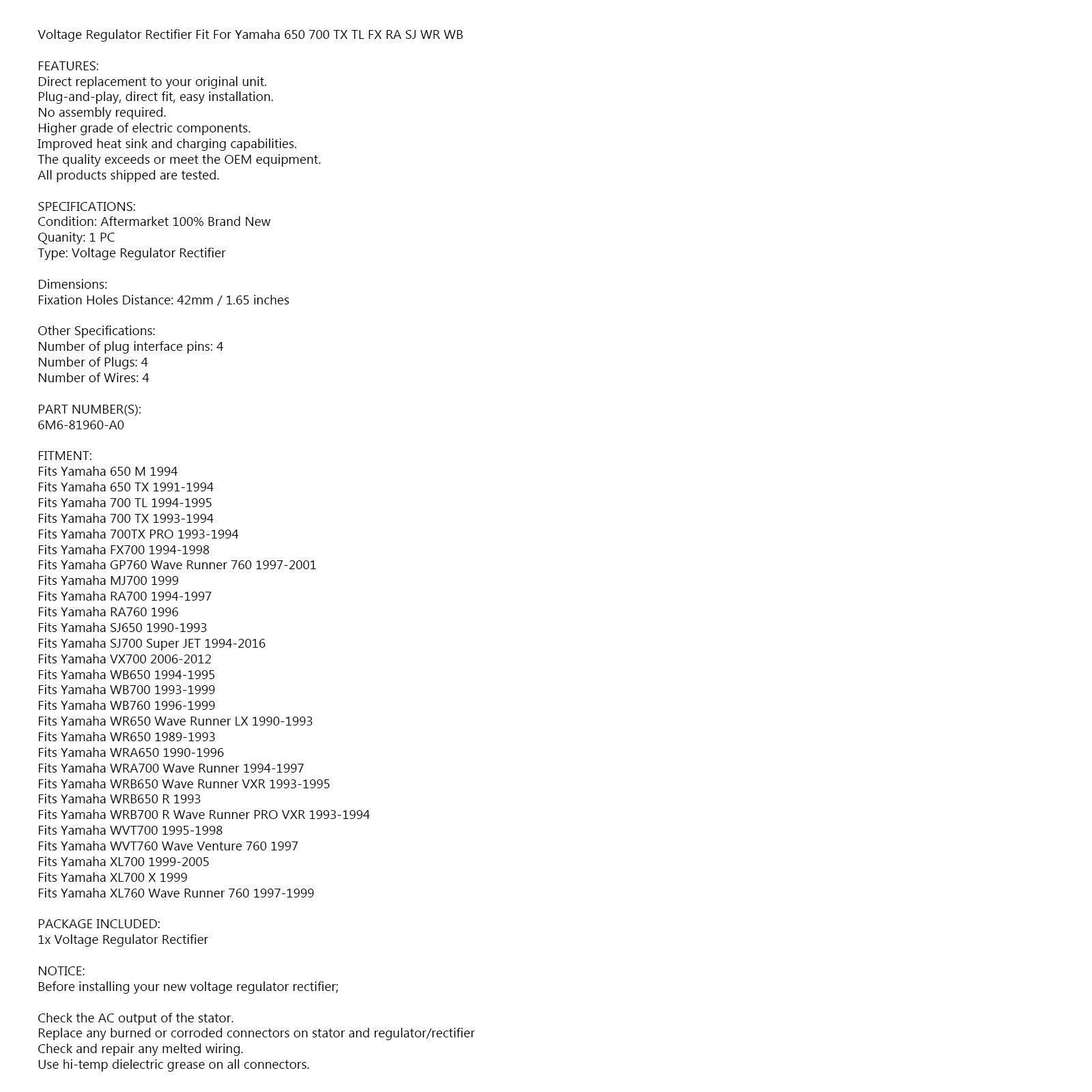 Voltage Regulator Rectifier Fit For Yamaha 650 700 TX TL FX RA SJ WR WB