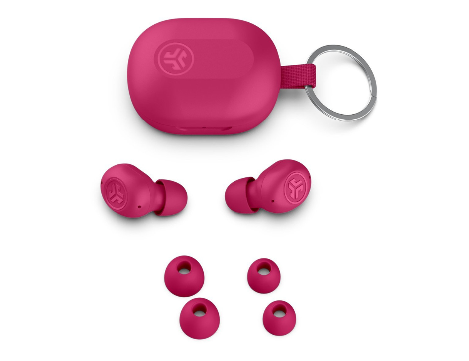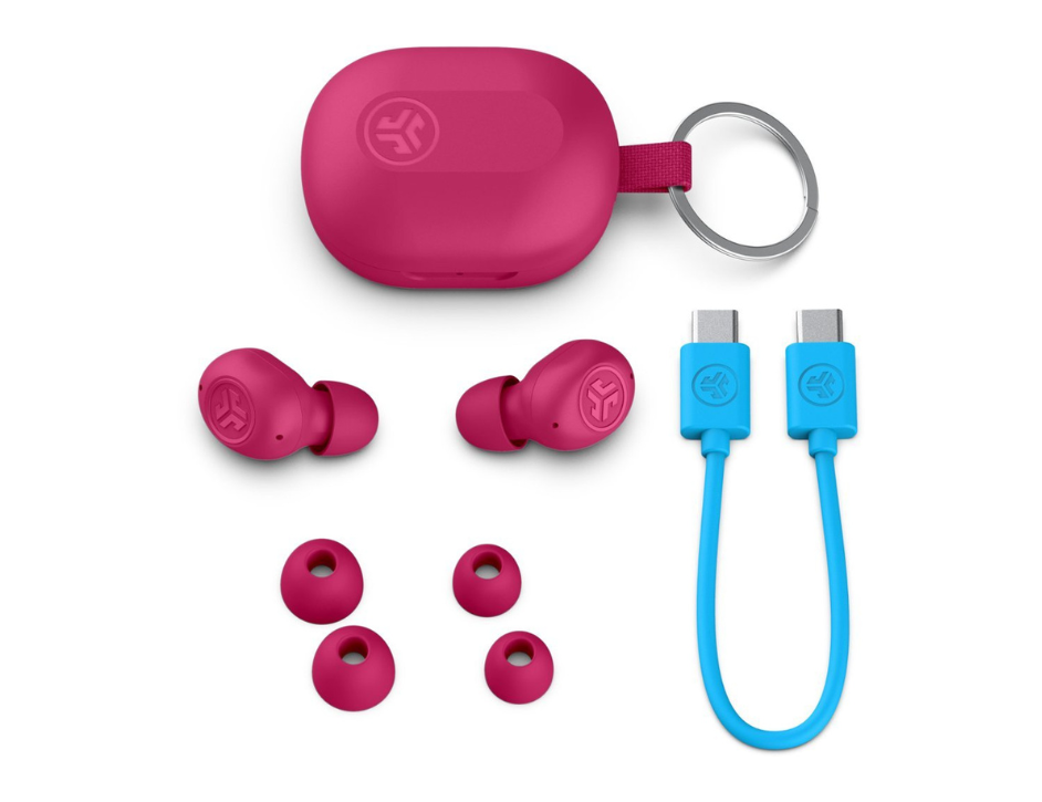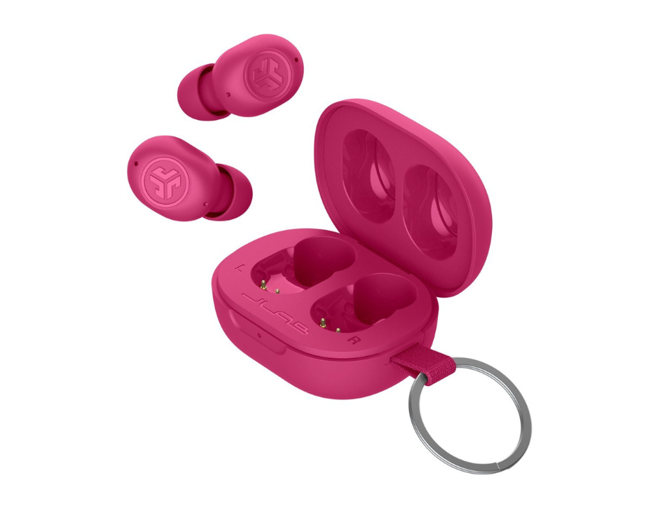 Experience the perfect blend of style and portability with the JLab JBuds Mini True Wireless Earbuds in a vibrant pink finish. Recognized as JLab smallest earbuds to date, these tiny but powerful audio companions are designed to provide a secure and comfortable fit for even the smallest ears. The ultra-compact charging case is designed with a built-in keychain loop, making it easier than ever to bring your music, podcasts, and calls along on your daily commute or travels. Despite their miniature footprint, these earbuds deliver the premium sound quality and reliable performance you expect from the JLab brand.