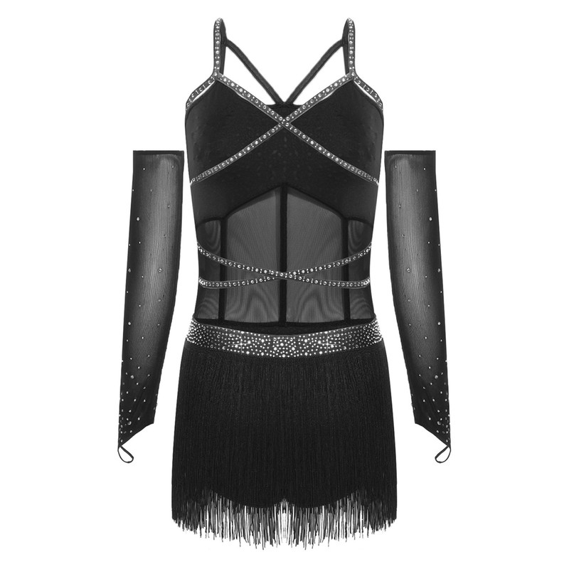 The tiered tassel details bring a fun and dynamic element, enhancing the overall visual appeal. Ideal for Latin dance forms like Tango and Samba, as well as dance performances, competitions, and dance classes.