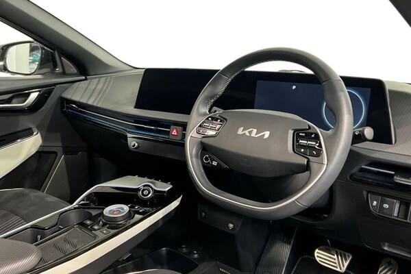 This 2023 Kia EV6 GT-Line S is a superb example, having had only one owner from new and boasting a clear vehicle history check. As an electric vehicle with Four Wheel Drive and a substantial 77 kWh battery, it offers an impressive maximum range of 300 miles, ensuring you can travel further on a single charge. Charging is convenient, taking approximately 12 hours and 30 minutes at home with a 7kW charger, while rapid public charging can take you from empty to 80% in just 20 minutes. This particular model comes with a wealth of notable features, including Remote Smart Park Assist with front and rear parking sensors, heated front seats, and a heated steering wheel for ultimate comfort. Stay connected and safe with Apple CarPlay with voice control and the Blind Spot View Monitor. The MOT is valid until May 2026. The Kia EV6 GT-Line S stands out with its exceptional performance, accelerating from 0-60mph in a swift 5.2 seconds, demonstrating its dynamic capabilities. This acceleration figure indicates a more responsive driving experience compared to many other vehicles in its class. Furthermore, the generous boot space provides ample room for all your luggage and shopping needs, making it a practical choice for families and individuals alike. The combination of its extensive electric range, rapid charging capabilities, and advanced technology makes this EV6 a compelling option for those seeking an efficient and well equipped electric car. Lifetime warranty available on this car, plus a £1,000 finance contribution when you part exchange. Voted UK Car Supermarket of the Year two years running, we offer 0% finance, part exchange, and lifetime warranties across our entire range. Every car is thoroughly inspected before sale and comes with a full history check, so you can buy with complete peace of mind. Buy with confidence on our best finance rates. Proud winners of the CarGurus Top-Rated Dealer 2022 and the MotoNovo Extra Mile Award. .12.3in Curved Driver Display Screen, 12.3in Curved Touchscreen Navigation, 12V Power Socket - Front, 20in Alloy Wheels - Black, 360 Degree Around View Monitor, 4x Front USB Charge Port, 60-40 Split Remote Folding Rear Seats, ABS - Anti Lock Braking System, Airbags - Twin Front, All-Round 3-Point Seatbelts, All-Round Electric Windows with Auto Up and Down Function, All-Round Height Adjustable Headrests, Ambient Lighting, Android Auto with Voice Control, Anti-Theft Alarm System, Apple CarPlay with Voice Control, Augmented Reality Head-Up Display, Auto Dimming Rear-View Mirror, Automatic Defog System, Automatic Headlight Control, Black High Gloss Door Mirrors, Blind Spot View Monitor, Blind-Spot Collision Avoidance Assist with Rear-Cross Traffic Assist and Safe Exit Assist, Bluetooth with Voice Recognition, Body Coloured - Door Garnish, Body Coloured Exterior Flush Door Handles - Automatic, Centre Console Cupholders, Centre Console with Open Storage Compartment and Armrest, Deluxe Door Scuff Plates, Drive Mode Select, Driver & Front Passenger Premium Relaxion Seats, Driver Power Memory Adjustable Seat with Front Passenger Power Seat with 2-Way Electric Lumbar, Dual Automatic Air Conditioning, Dual LED Headlights with Adaptive Driving Beam, Dual Shell Horn, ECall, Electric Parking Brake with Auto Hold Function, Electrically Folding-Adjustable and Heated Door Mirrors with LED Indicator Lights, Engine Immobiliser, Engine Start-Stop Button with Smart Entry System, ESC - Electronic Stability Control, Forward Collision-Avoidance Assist - City - Pedestrian - Cyclist - Junction, Forward Collision-Avoidance Assist - Junction Crossing, Free 7-year Kia Connect - UVO, Front and Rear Door Storage, Front and Rear Luggage Area Light - LED, Front Cabin Light - LED, Front Center Airbag, Front Center Side Airbag, Front Parking Sensors, Front Passenger Airbag Cut Off Switch, Front Seatback Pockets, Front Seatbelt Height Adjusters, Front Seatbelt Pre-Tensioners, Glovebox with Illumination, GT-Line Exterior Styling, Headlining Cloth, Heated Front Seats, Heated Rear Window, Heated Steering Wheel, High Gloss Black Beltline, Highway Driving Assist 2, Hill-Start Assist Control - HAC, Impact Sensing Auto Door Unlocking, Intelligent Speed Limit Assist - ISLA, Internal Door Lock - Unlock Function, ISOFIX Child Seat Top Tethers and Anchor Fixings Outer 2nd Row, Lane Follow Assist - LFA, Lane Keeping Assist System - LKAS with Driver Attention Warning, LED Daytime Running Lights, LED R