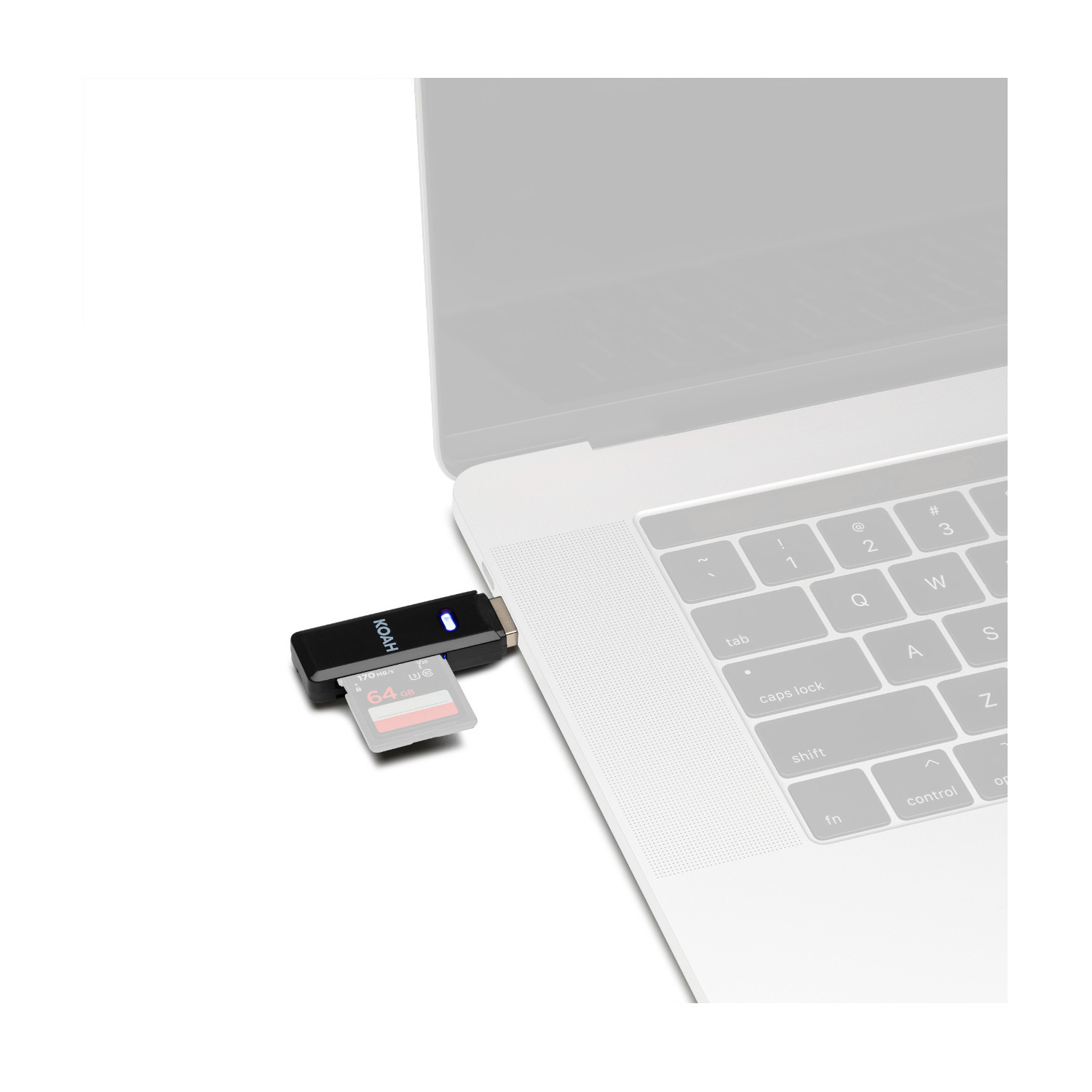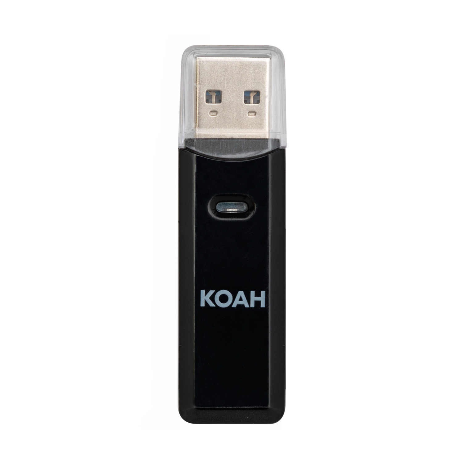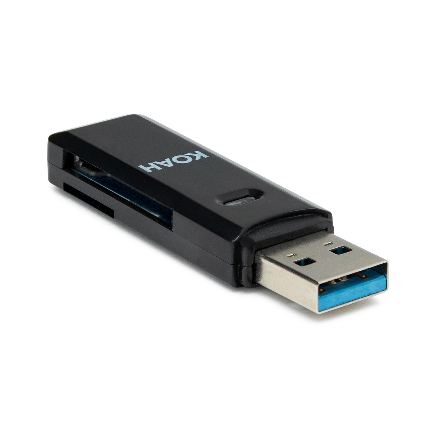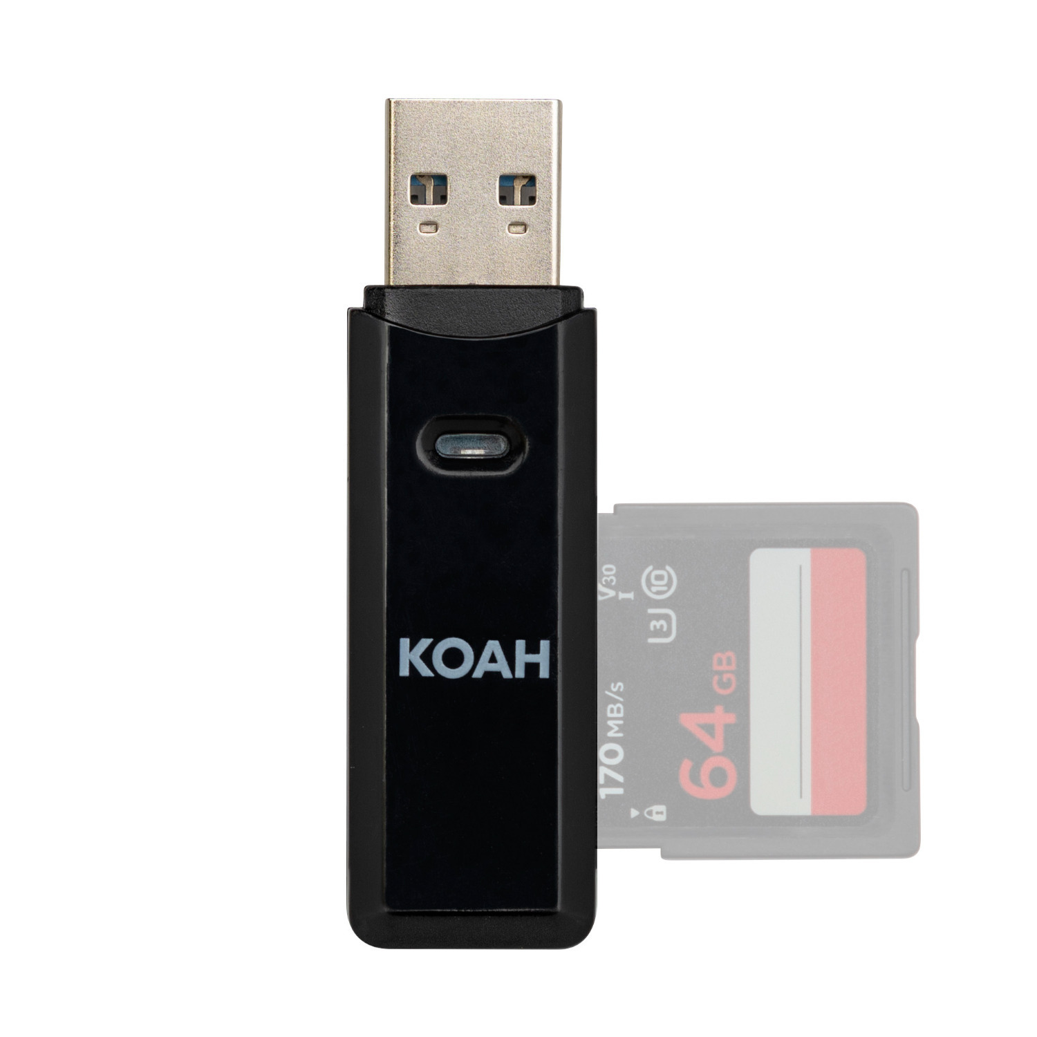 The Koah 2-in-1 USB 3.0 Memory Card Reader allows photographers to quickly and easily transfer data in SD or micro SD formats. Easy to use with no installation required, the Koah 2-in-1 USB 3.0 Memory Card Reader works with SDXC/SDHC/SD and Micro SDXC/SDHC/SD cards. It's also compatible with MMC and RS MMC cards. The card reader works with USB 3.0, 2.0 or 1.1 ports and can be used with PC or Mac. This 2-in-1 card reader both reads and writes data and is capable of super-speed data transfer, up to 5 Gbps.