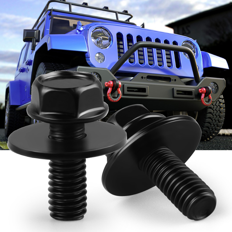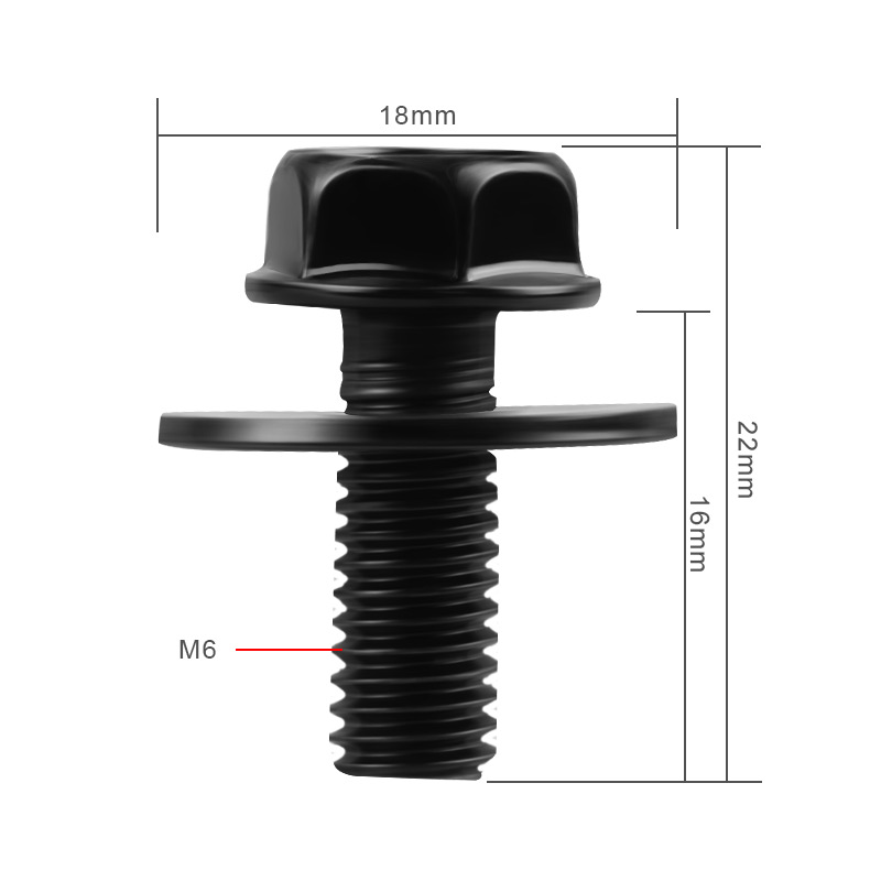 New bolts. M6-1.0 x 16mm long. 10mm hex. 17mm washer.