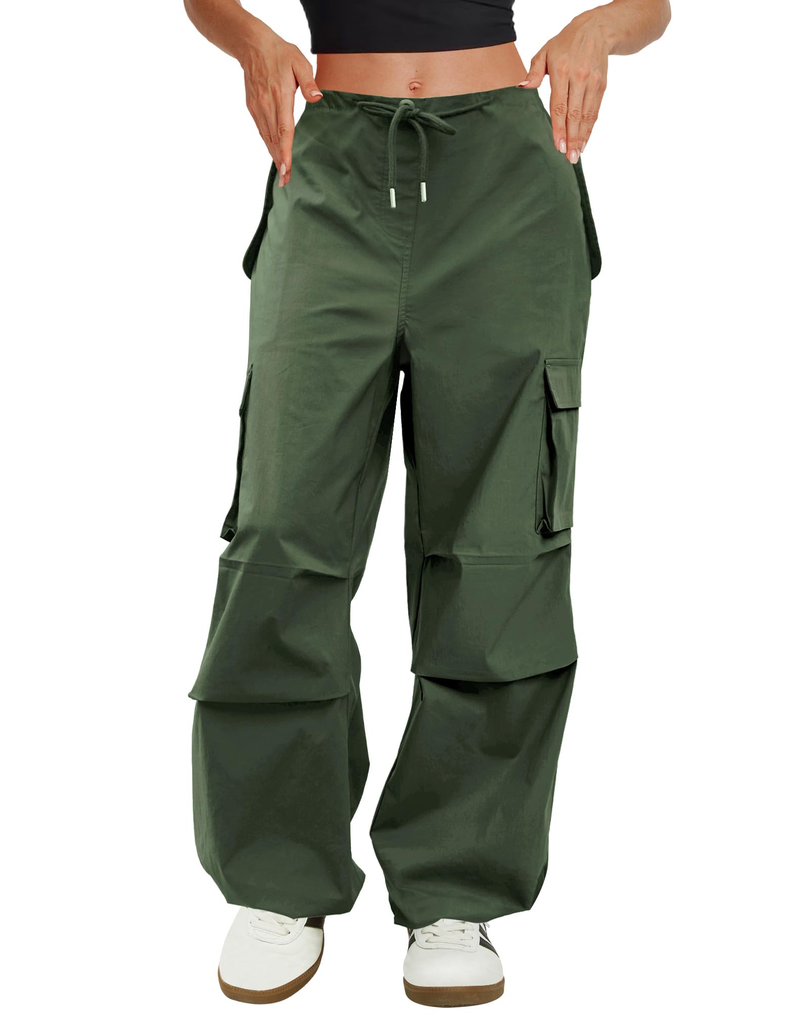 Cargo Pants Women Low Waisted Parachute Pants with Pockets Loose Baggy Hiking Pants Y2K Clothes Olive Green