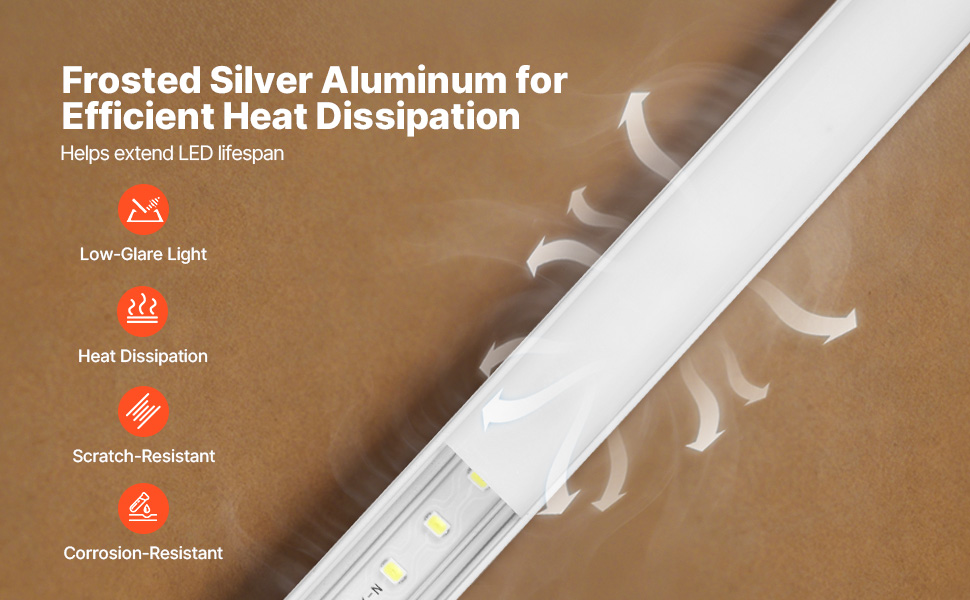 Made with frosted silver aluminum, this LED strip channel provides efficient heat dissipation to extend LED lifespan, while being scratch-resistant and corrosion-resistant for long-lasting, stable performance.