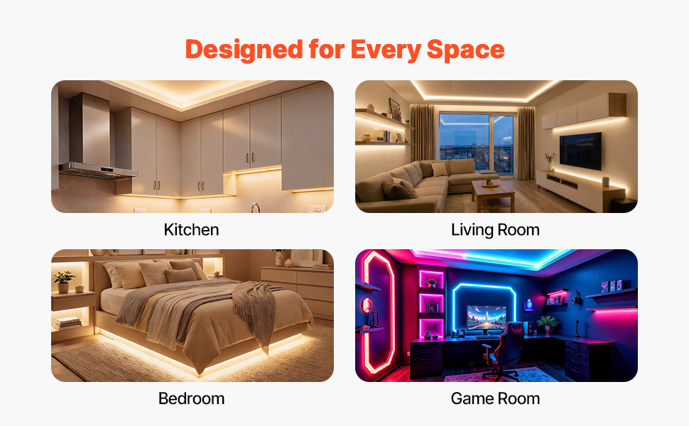 This LED strip light channel is ideal for kitchens, living rooms, game rooms, and bedrooms, easily creating a bright, cozy, and stylish lighting environment in any part of your home.