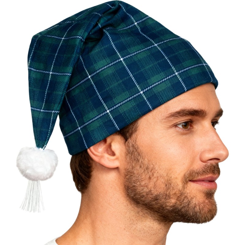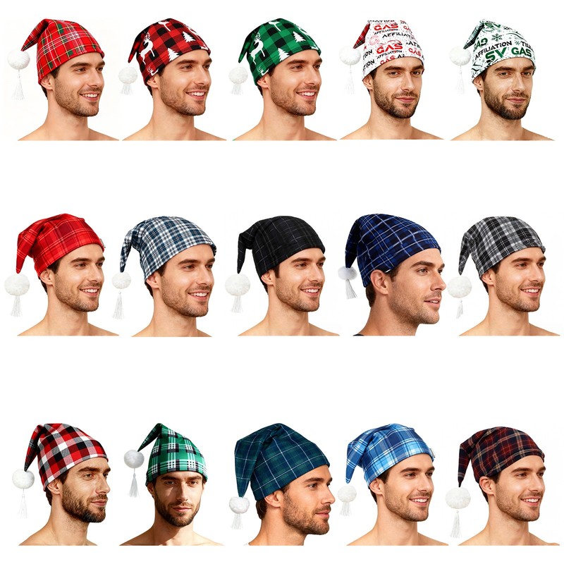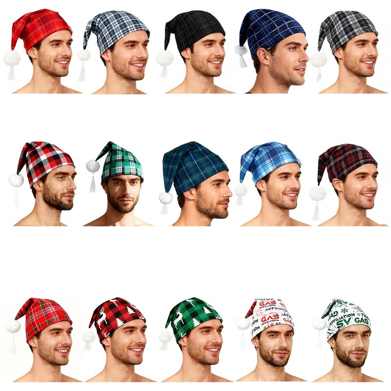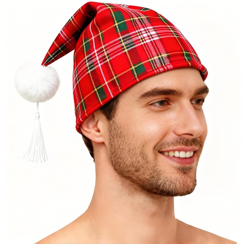 Mens Plaid Sleeping Night Stocking Cap Hat w/Pom Ball Tassel Christmas Nightwear