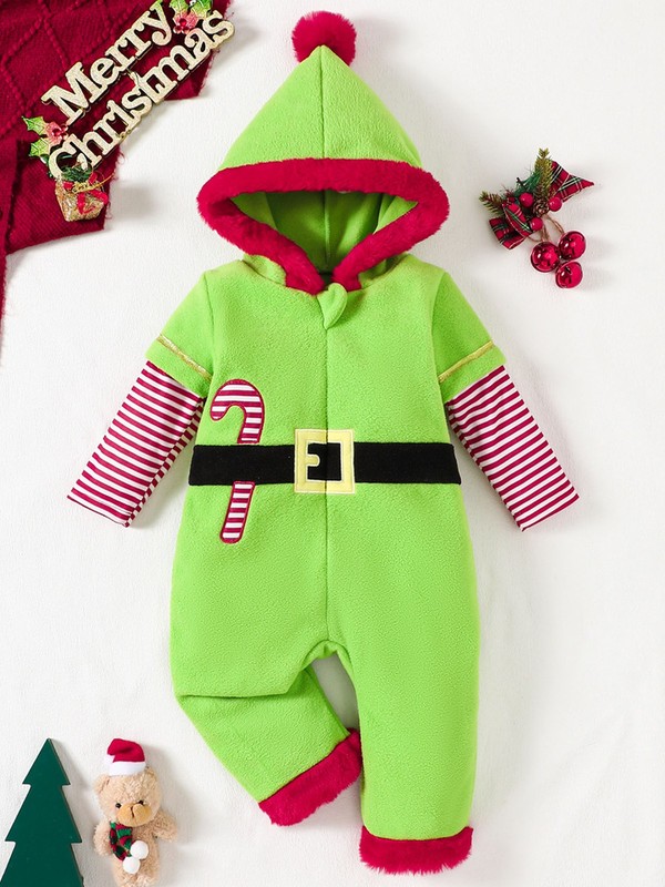 The long-sleeve hooded style is not only warm but also gives a Santa Claus-like look, which is very suitable for the Christmas theme.
