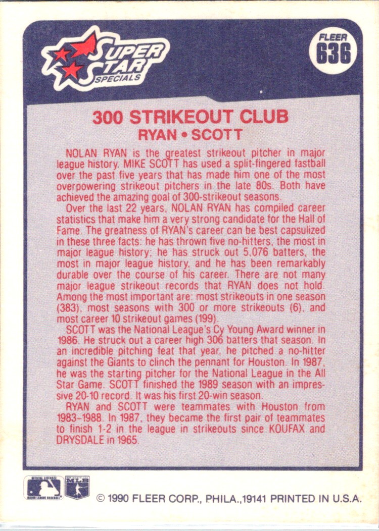 1990 Fleer Nolan Ryan/Mike Scott Texas Rangers/Houston Astros #636