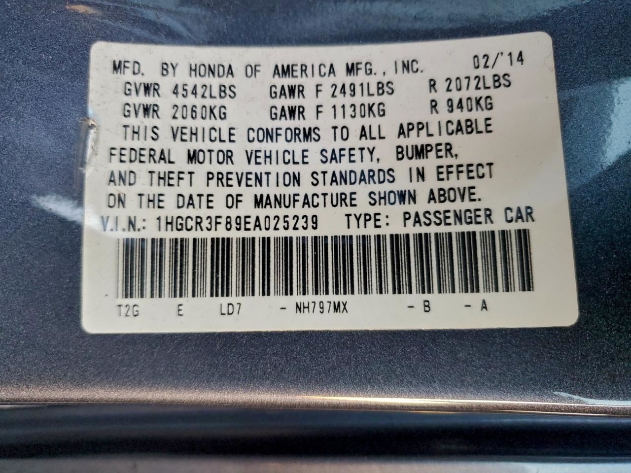 ACCORD 13-15 Sdn, quarter mounted, w/LED accent, (1 incandescent bulb), EX-L (leather), R.
