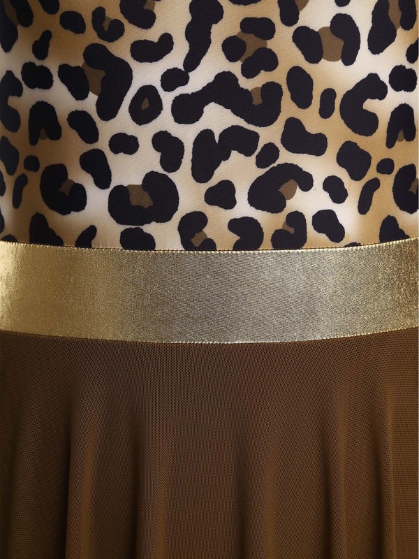 Crafted from a blend of polyester and spandex, this dress offers elasticity and comfort, allowing for free movement and a perfect fit.