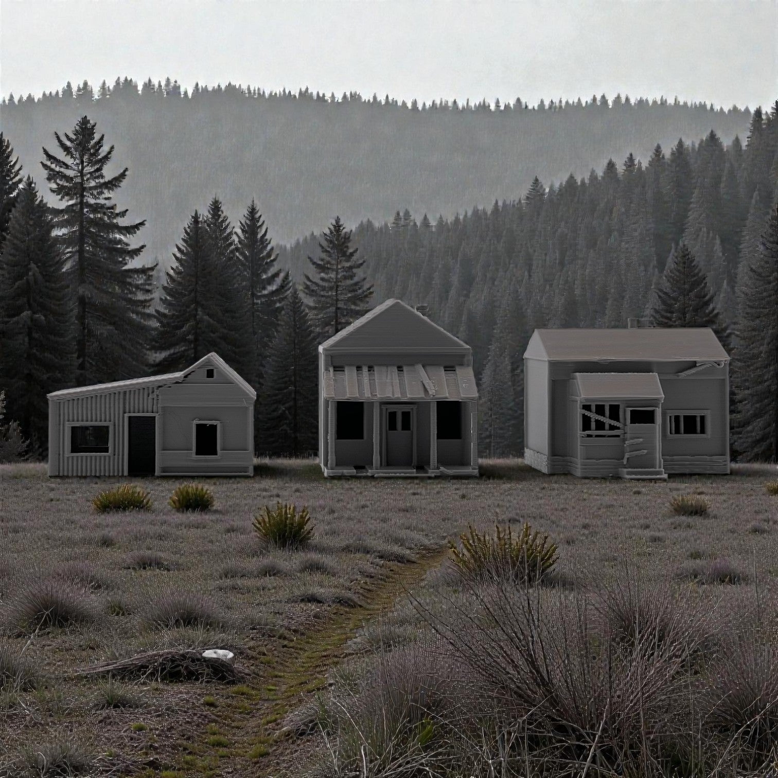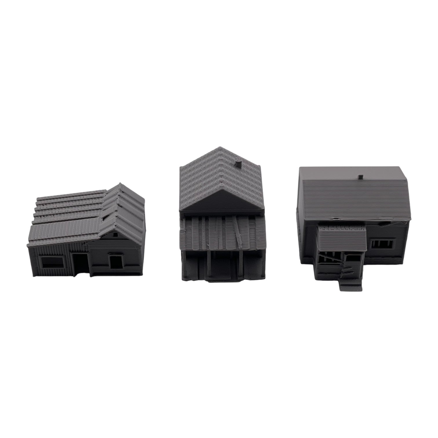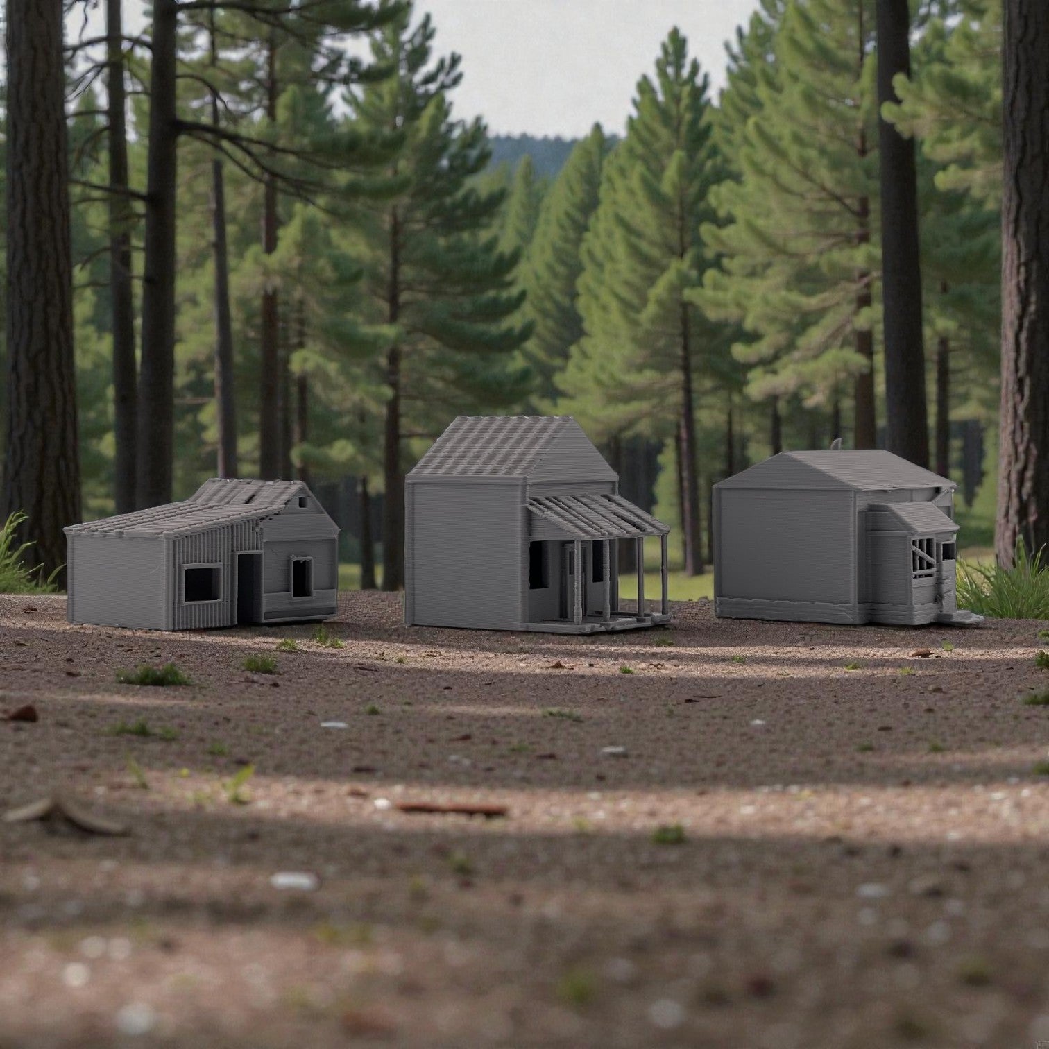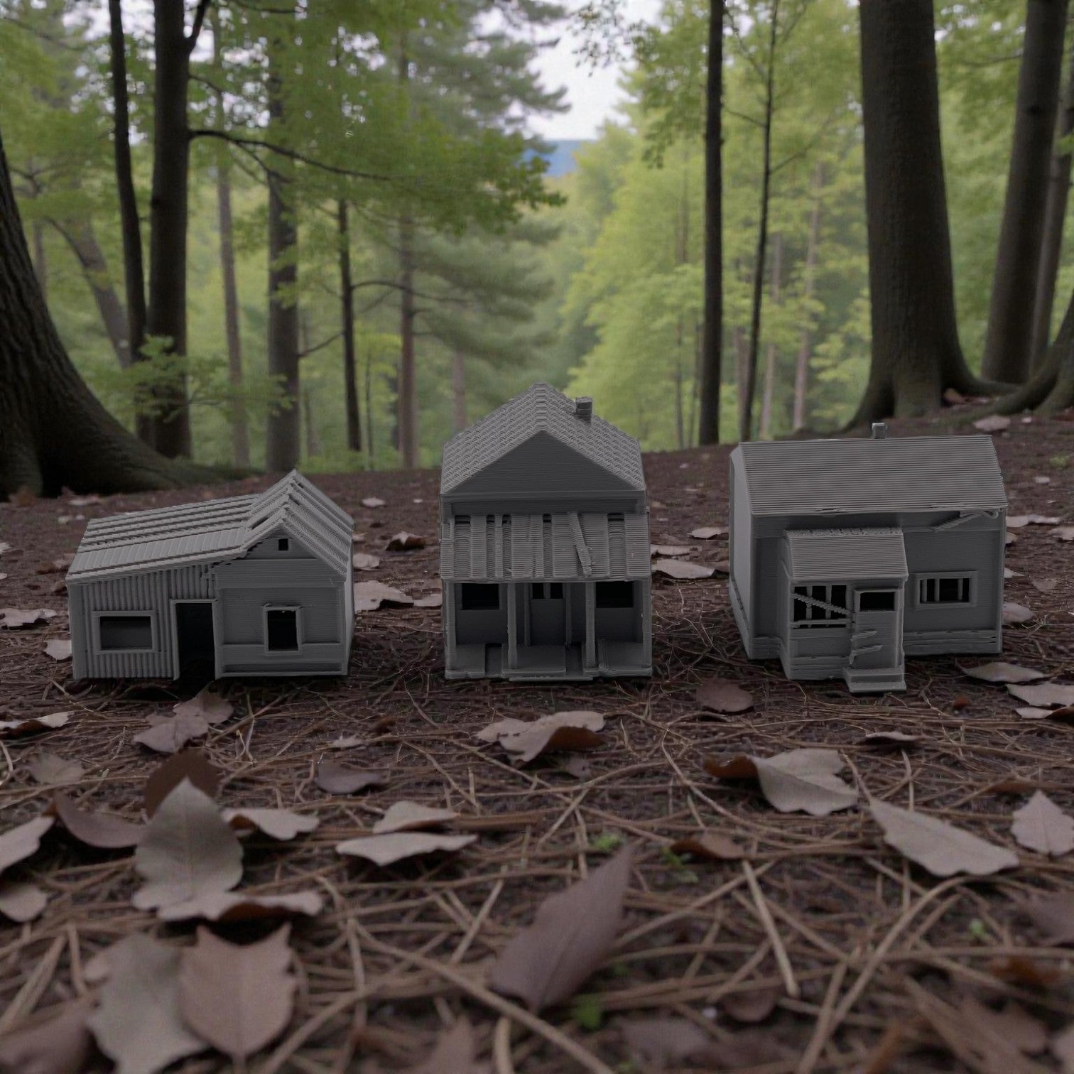 Add atmosphere and storytelling to your layout with this set of three Small Abandoned Houses. Designed to capture the look of run-down, long-forgotten structures, these buildings are perfect for depicting neglected neighborhoods, rural backroads, or areas left behind by time. They can also be used as weathered trackside shanties-ideal for representing forgotten worker housing, maintenance sheds, or long-abandoned structures along quiet rail lines.